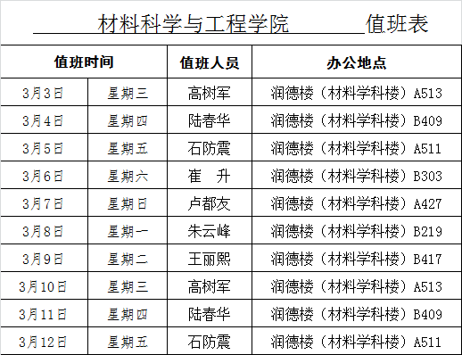 值班表(3月3日至3月12日)