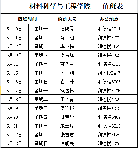 值班表(5月10日—5月23日)