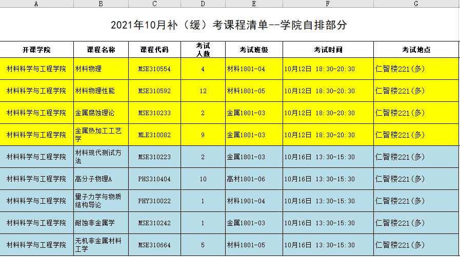 1.教务处统排的补(缓)考安排表请见附件1;需由开课学院自行编排的补(缓)考课程清单及学生名单请见附件2。