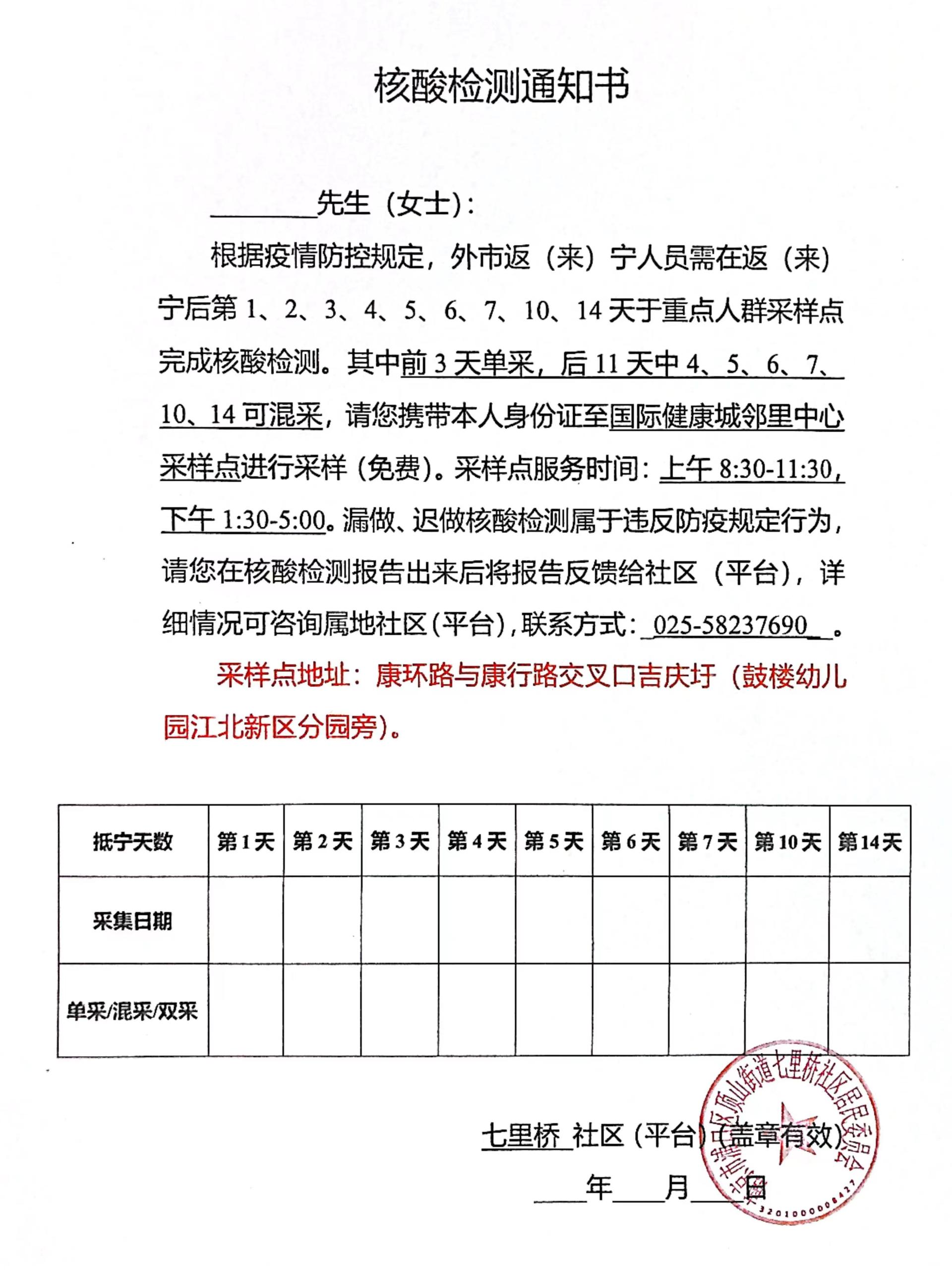 丁家桥重点人员检测请彩色打印以下文件,并自行前往检测。