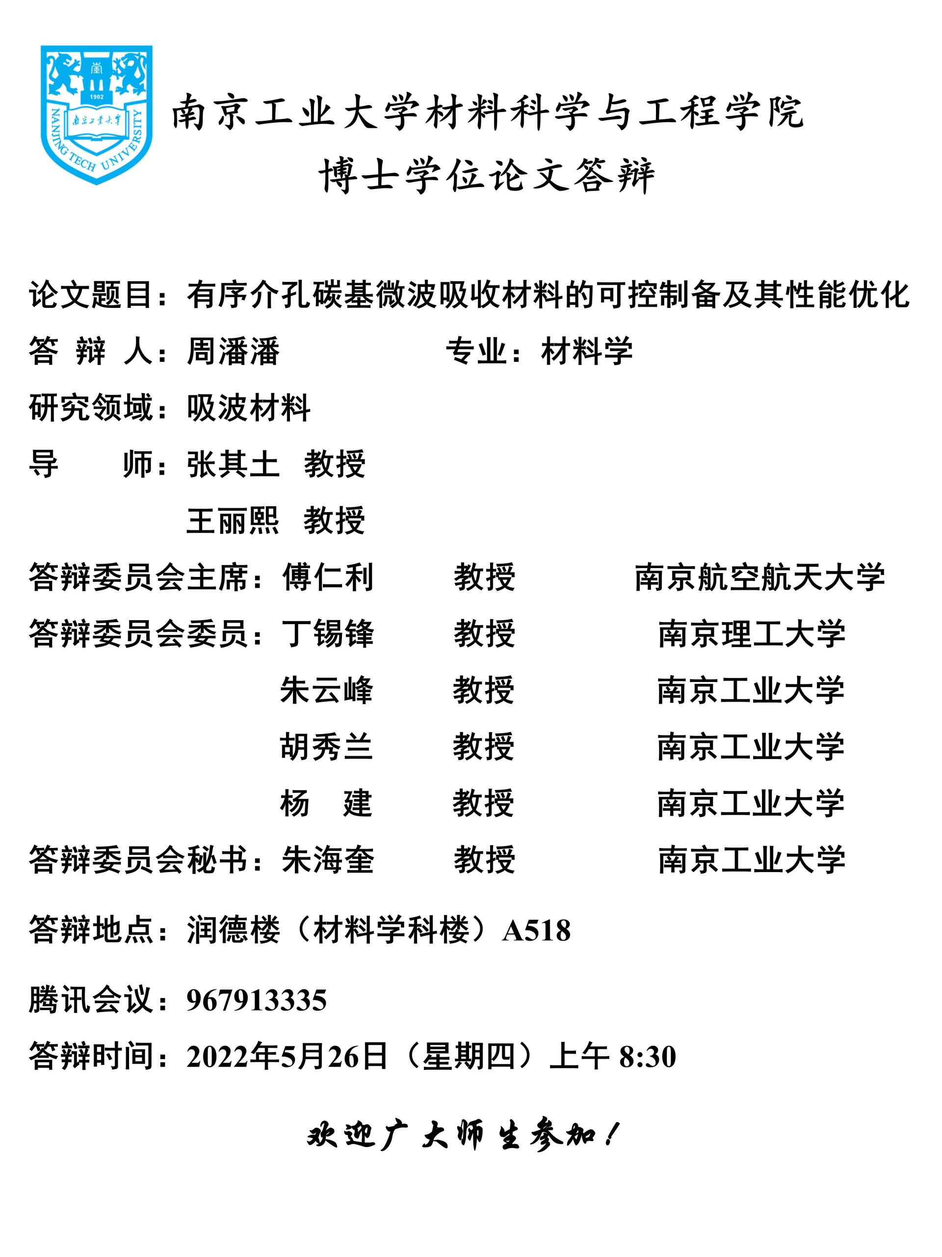 【研究生】2022年第一批博士学位论文答辩公告(一)