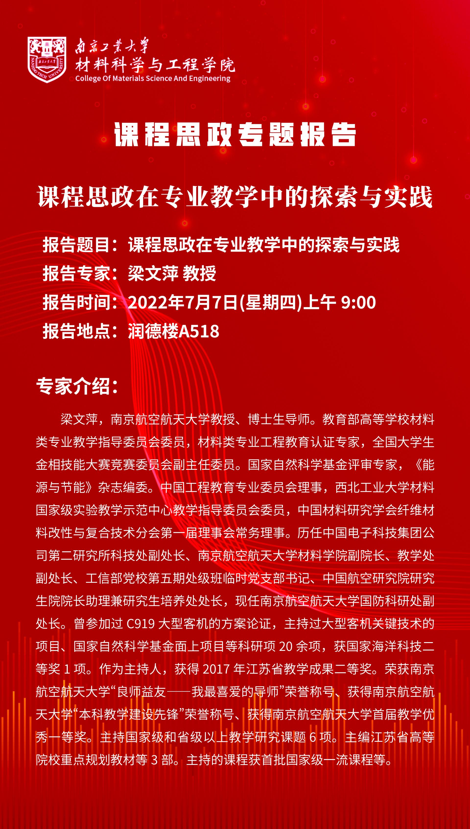 【讲座预告】课程思政专题报告会