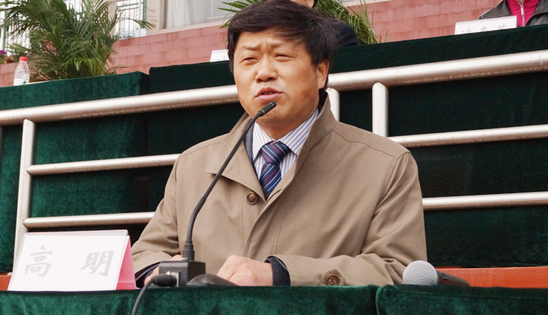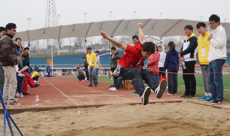 在庄严的升国旗仪式之后,张昊同学和陈禹同同学分别代表运动员和裁判员进行了发言。随后,校党委副书记、副校长高明发表了热情洋溢的讲话。高副书记回顾了过去一年我校体育工作取得的喜人成绩,肯定了材料学院在体育工作方面的努力,高度赞扬了材料学院在阳光长跑等学生群体体育活动中取得的成效。同时对同学们能够在当天天气恶劣的条件下依然坚持认真完成表演的精神做出了充分的肯定。高副书记号召全体同学积极参加体育活动,不要窝在自己的小天地中足不出户,变成“宅女”和“宅男”。锻炼身体,强健体魄,希望同学们在体育活动中,培养不畏艰难,勇于拼搏的优秀品质。