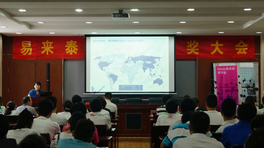 颁奖仪式之后,阿克苏诺贝尔特性助剂部亚太区技术经理史淑兰女士介绍了公司的发展历史和主要产品。最后阿克苏诺贝尔功能化学品人力资源部姚轶女士与同学们分享了一些简历的要求、面试时的言行举止等面试关键点的技巧与心得。会后,所有获奖同学与阿克苏诺贝尔特种化学有限公司代表以及参会领导合影留念。 |