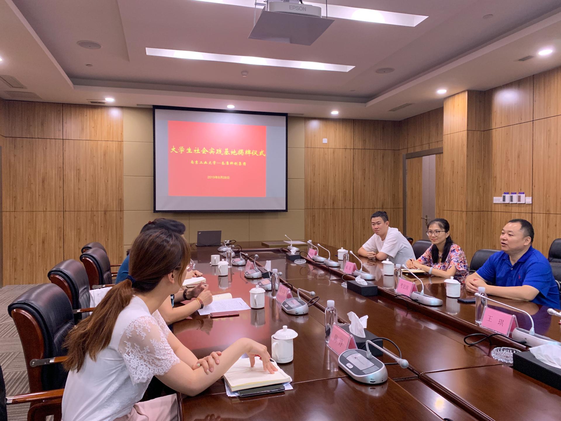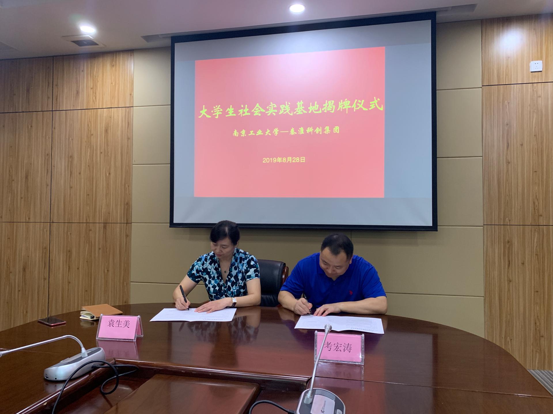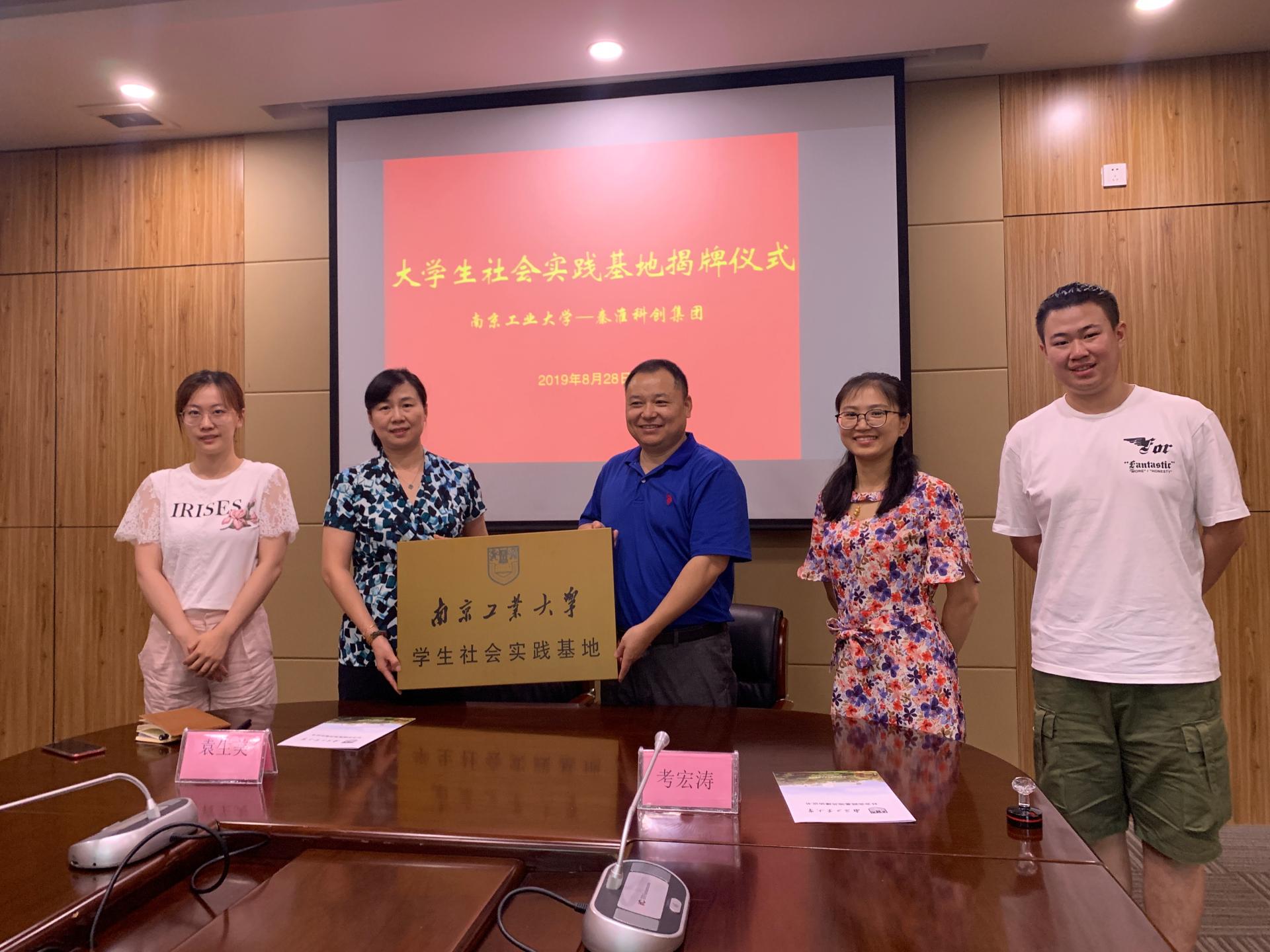 8月28日,南京秦淮科创集团有限公司和tyc234cc 太阳成集团大学生社会实践基地签约挂牌仪式于南京市白下高新技术开发区办公楼举行。南京秦淮科创集团副总经理袁生美,材料学院党委副书记考宏涛、团委书记戴惠、团委副书记王琪以及园区相关负责人出席仪式。
