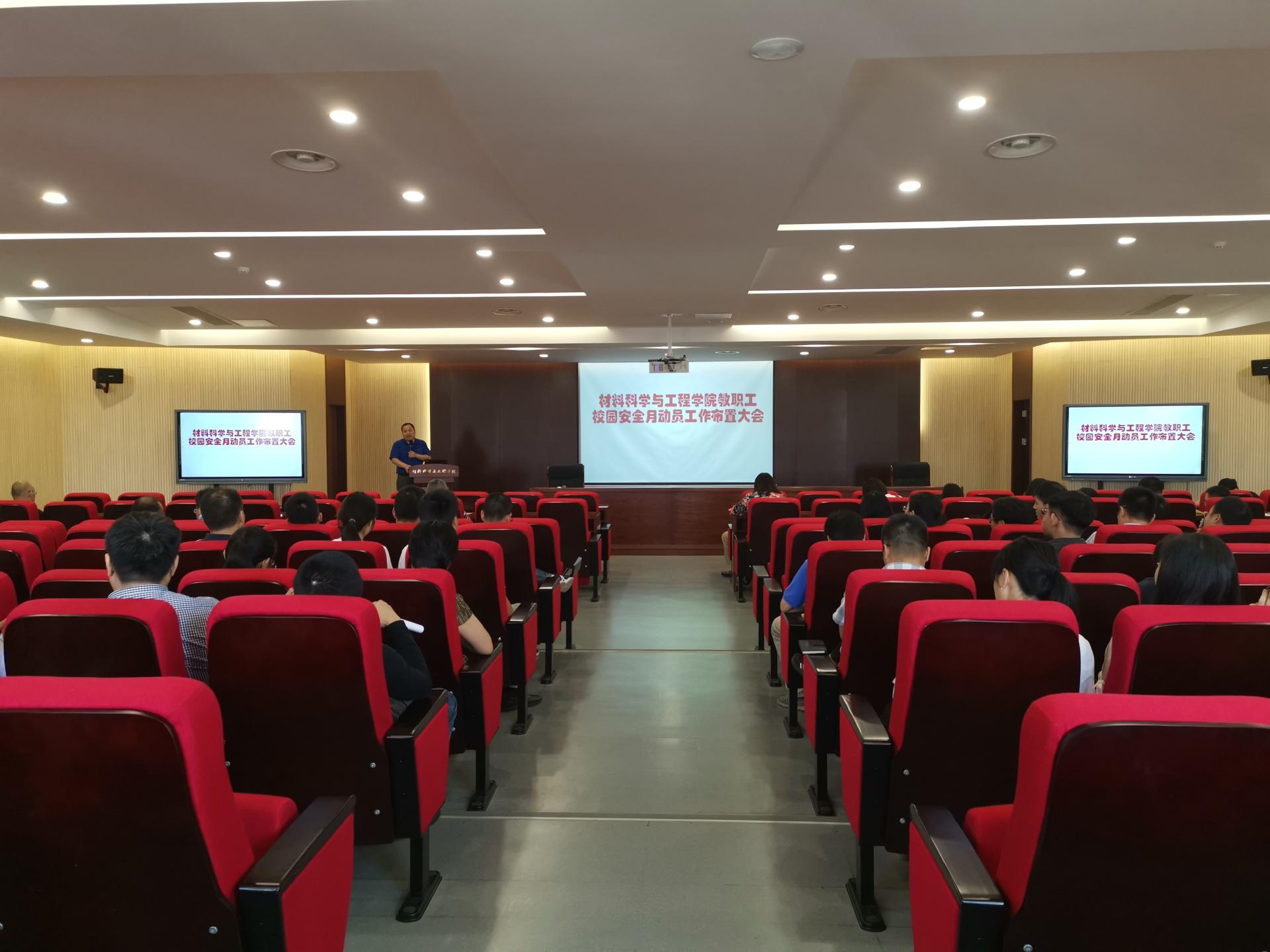 9月18日下午,为了落实《太阳成集团tyc234cc第十九届校园“安全月”活动实施方案》(南工委办〔2019〕29号)、《太阳成集团tyc234cc实验室安全环保奖惩管理办法(试行)》(南工校实〔2019〕2号)文件精神,材料学院在材料学科楼B512召开教职工校园安全月动员工作布置大会。学院教职工、先进无机功能复合材料协同创新中心人员参加了此次会议,会议由学院党委副书记考宏涛主持。