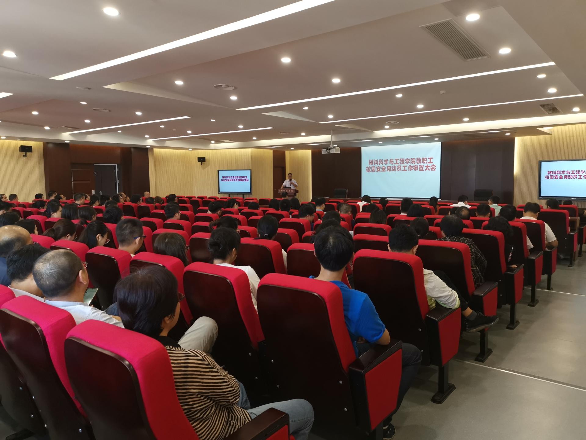 考宏涛副书记从安全事故案例入手,强调学院安全工作的重要性。随后材料学院副院长崔升根据学校第十九届校园“安全月”活动实施方案,结合学院实际情况,对安全规章制度梳理、安全培训开展、安全事故警示教育及学科楼应急疏散演练等多项工作进行具体安排。同时要求各位老师自查自改,要全面排查实验室安全隐患、做好风险评估、检查和整改,防控督查;不断提高师生的安全意识和安全素质;不断强化安全教育,提升安全管理能力。
