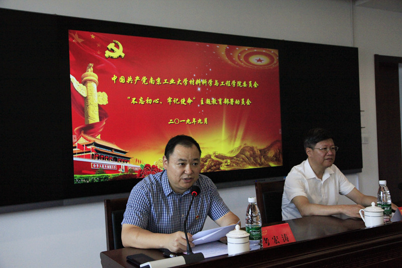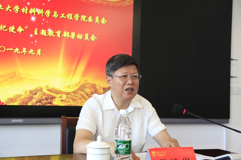 材料学院党委副书记考宏涛作动员部署,指出学院党委、各党支部和广大党员干部要充分认识开展“不忘初心、牢记使命”主题教育的重大意义,把思想和行动统一到中央、省委和学校党委决策部署上来,要深刻领会开展主题教育的指导思想,准确把握目标要求和工作安排,确保主题教育出成果、见成效。一是要提高政治站位,深刻认识开展主题教育的重大意义;二是要抓住关键环节,落实重点措施,切实增强开展主题教育的针对性和实效性;三是要加强督导检查、强化组织保障,确保主题教育善始善终、善作善成。