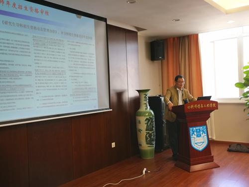 崔升首先带领大家学习了相关政策与制度文件,提醒大家增强职业道德,严格落实导师使命与责任。张华通过展示研究生教育中人才培养与社会需求切合度不高、人才培养与高质量发展需求存在差距等问题,带领大家学习了课程教学改革、实践创新能力培养、质量保障体系构建思路、发挥导师核心作用等措施。考宏涛带领大家回顾了一些典型事例,警示导师要关注学生学习、生活,重防学术不端行为,增强心理健康教育。卢都友介绍了我院目前国际化培养情形,希望导师们留意开拓国际交流通道,鼓励实质性合作,提升国际化培养程度和质量。