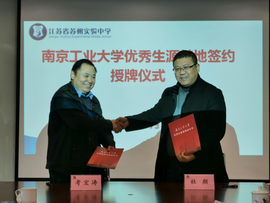 上午,在江苏省苏州实验中学举行了“优秀生源基地”签约挂牌仪式。江苏省苏州实验中学金山路校区执行校长杜颜、教务处主任马朱林、校长办公室主任张长松及高三年级主任丁宗国参加了仪式。杜颜校长对我校的到来表示欢迎,并介绍了学校的发展情况。下午,在苏州市吴江中学举行了“优秀生源基地”签约挂牌仪式。吴江中学校长张建华、副校长朱芸、卢卫忠、韩保席、徐峰及相关负责人参加了仪式。张建华校长代表吴江中学致欢迎辞,并介绍了学校的发展历史和建设目标。两场活动中,材科科学与工程学院党委副书记考宏涛代表学校与两校签署了“优秀生源基地”协议书。党委太阳集团部黎能进对两校近年来向我校输送大量优质生源表示感谢,围绕“国内一流、国际知名、培养质量高、就业前景好、招生政策好”五个关键词介绍了我校的情况,并代表学校分别向两所中学授牌。