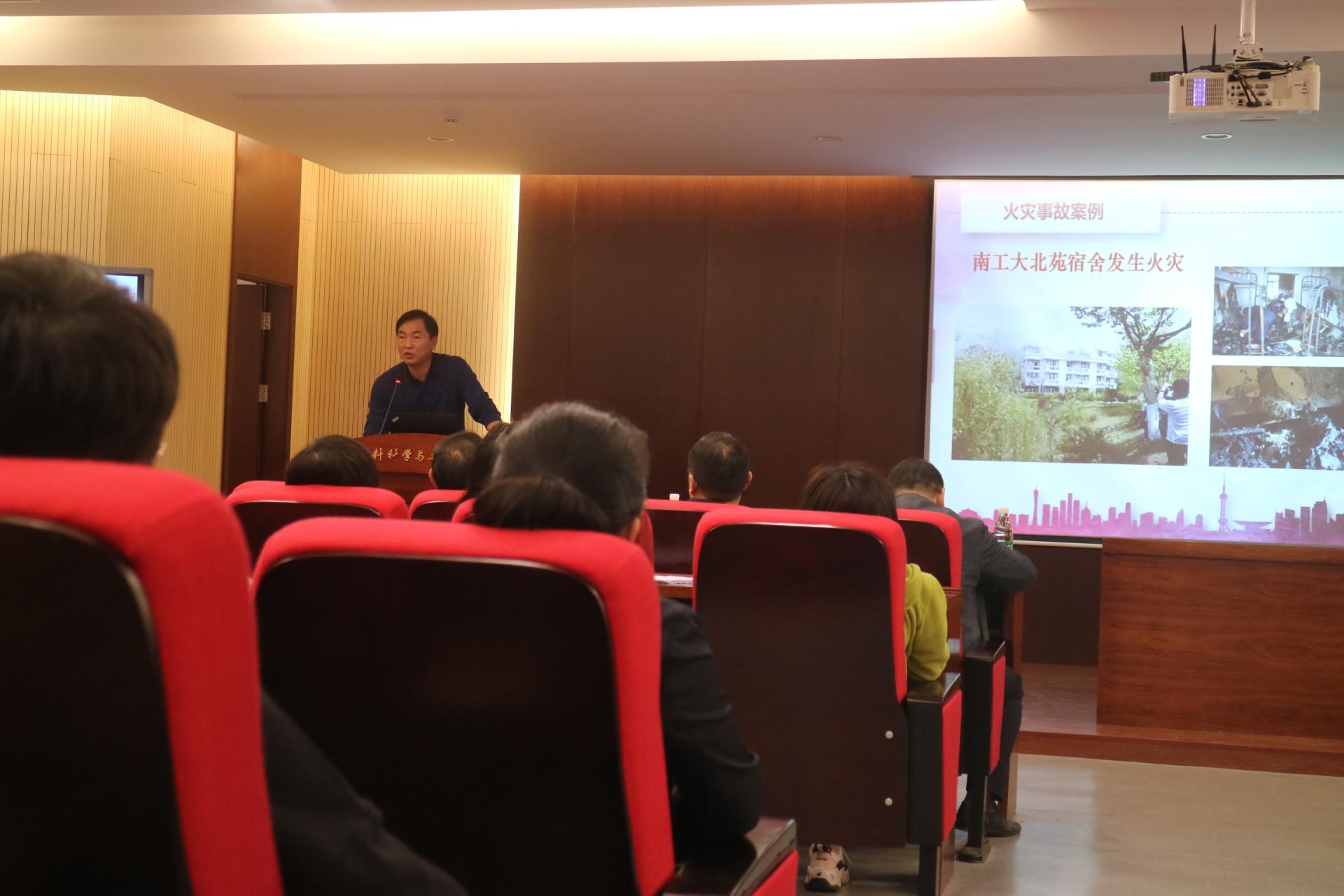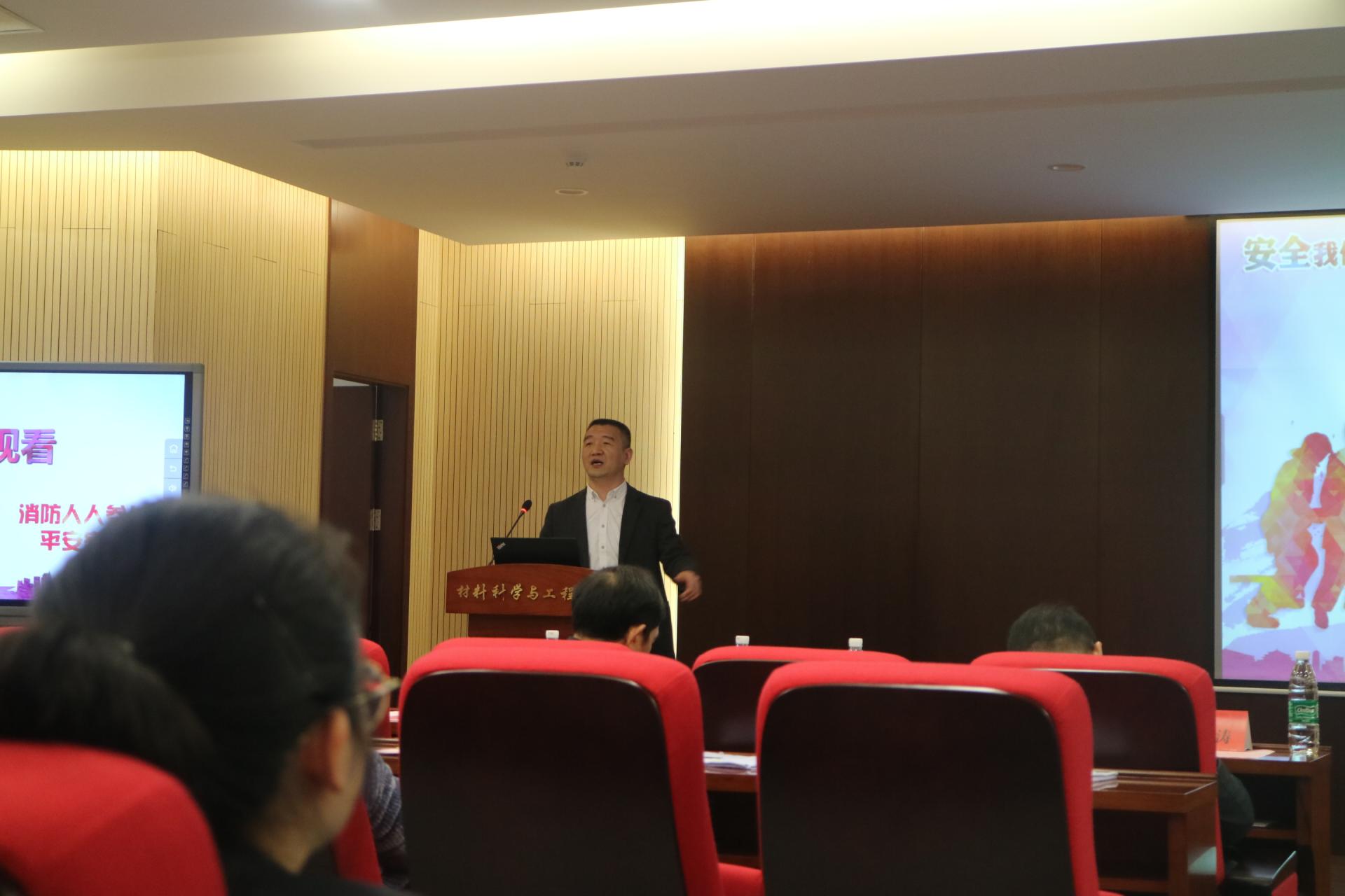 会上,材料学院党委副书记考宏涛、实验室建设管理处陈晓猛处长、校园安全部消防科施自力老师就校园安全以及消防的各个方面做了专题辅导报告。最后,材料学院党委书记高树军围绕“校园安全月”和“师德师风建设重点月”活动的目的、意义与要求进行了动员和布置。