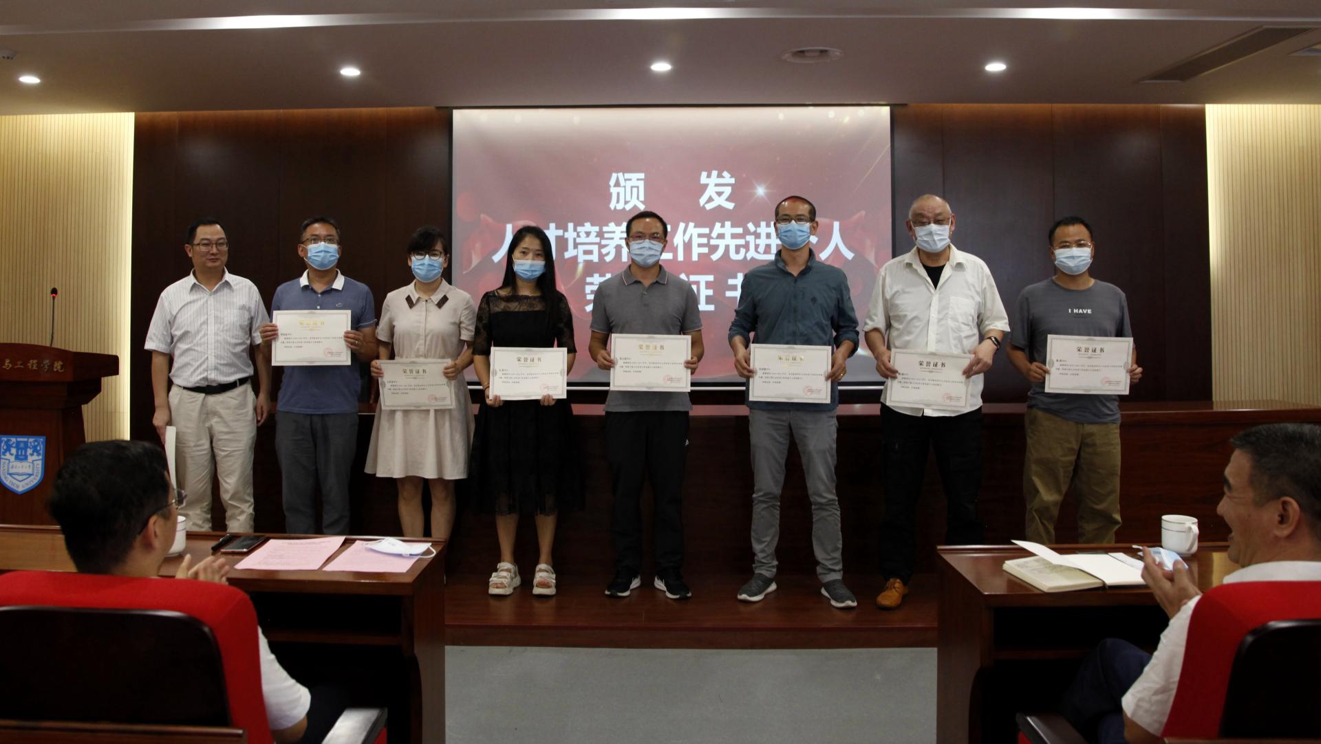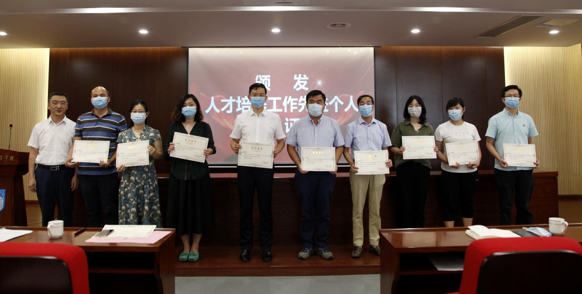 首先,陆春华院长宣读表彰决定,对在本科生、研究生的培养以及创新创业指导等方面取得突出成绩的54位老师进行了表彰。陆春华院长希望受表彰的个人和集体珍惜荣誉、戒骄戒躁,弘扬伟大建党精神,进一步增强责任感和使命感。学院广大教师以他们为榜样,落实立德树人根本任务,切实担当为党育人,为国育才的光荣使命。随后高树军书记、陆春华院长、崔升副院长等学院领导为受表彰的老师颁发了获奖证书。