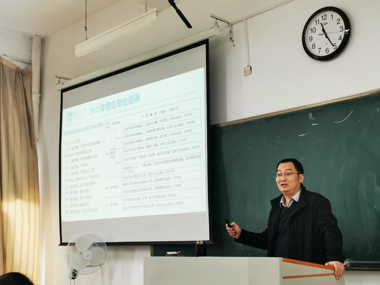 崔升副院长详细介绍了我院历史沿革、学科简况、师资队伍、研究领域、科研团队、国际合作交流和国内联合培养等情况,并重点介绍了学院学科研究方向,解读了研究生奖助体系、研究生招生目录以及历年研究生招生与就业情况,热情欢迎金陵科技学院有志于投身材料领域科学研究的同学们报考tyc234cc 太阳成集团。现场气氛热烈,与会同学针对我院研究生招生政策进行了提问咨询,并一致表示受益匪浅。