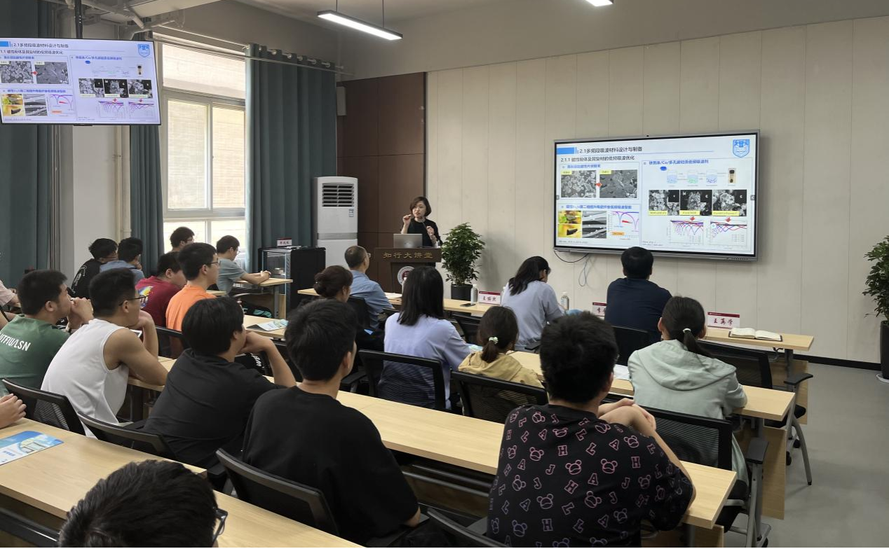 随后,王丽熙副院长作了一场主题为“多频段、多温区电磁吸波材料设计与制备”的精彩学术报告。她结合自己多年的研究经验,深入浅出地介绍了电磁吸波材料的基本原理、应用领域以及未来的发展趋势。报告内容丰富、前沿性强,引起了与会师生的浓厚兴趣。