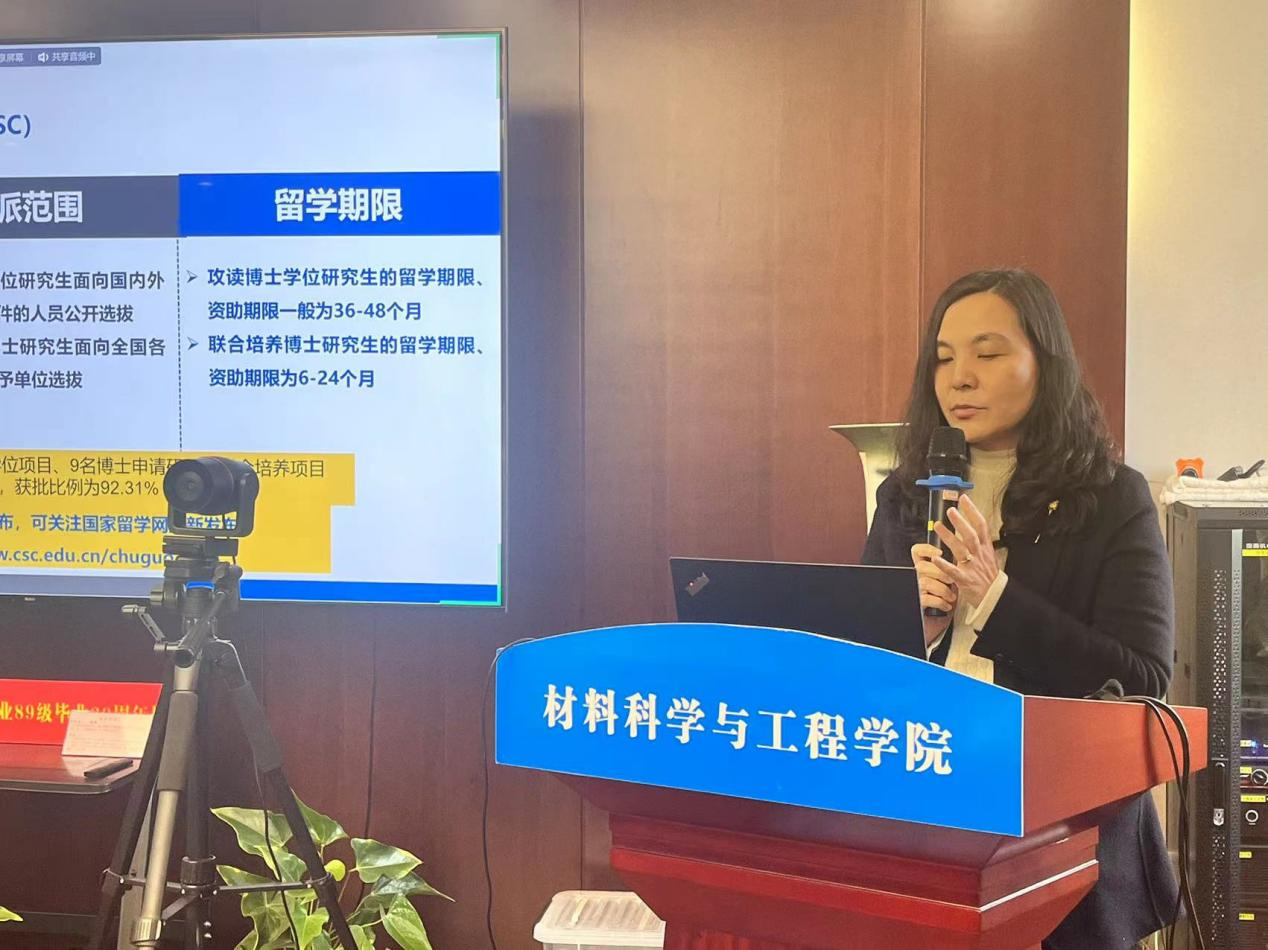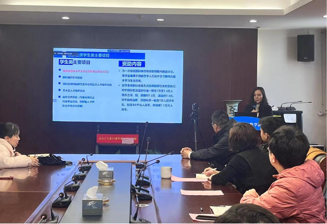 为了进一步推动学术国际化,3月7日下午材料学院与化学学院在润德楼A518联合举办了一场关于2024年国家公派留学政策的宣讲会。研究生院副院长谢婧婧教授对国家公派留学政策进行了详细解读,另外两位公派留学归来的优秀博士生——材料学院的黄舜天和化学学院的陈智豪也分享他们的访学经历和申报经验,吸引了众多师生积极参与。