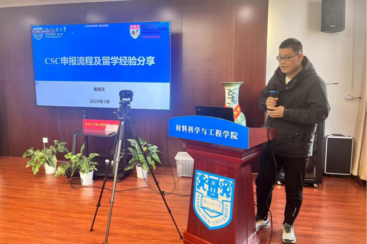 随后,黄舜天博士分享了他在新加坡南洋理工大学的访学经历。他详细介绍了南洋理工大学的学术氛围、科研资源和留学生活,并结合自己的研究经历,分享了在海外进行科研工作的心得体会。他强调了语言能力、科研素养和跨文化交流能力在公派留学中的重要性,为同学们提供了很好的建议。