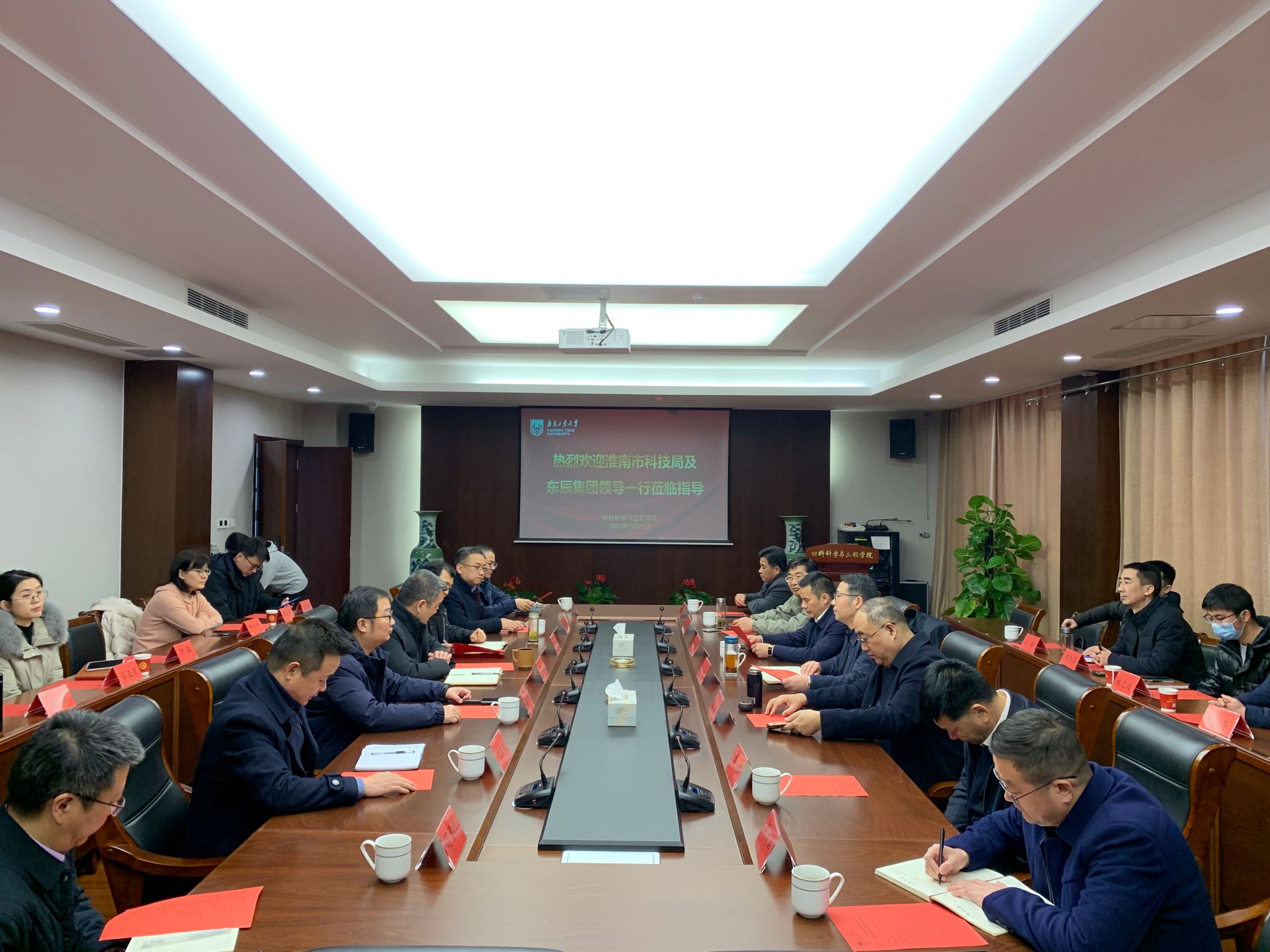 2月24日上午,淮南市科技局党组书记、局长刘银率队淮南东辰集团李懋董事长一行15人回访我院,开展精准产学研对接活动。学院党委书记高树军、院长崔升、副院长卢都友出席会议,副院长沈岳松主持会议。