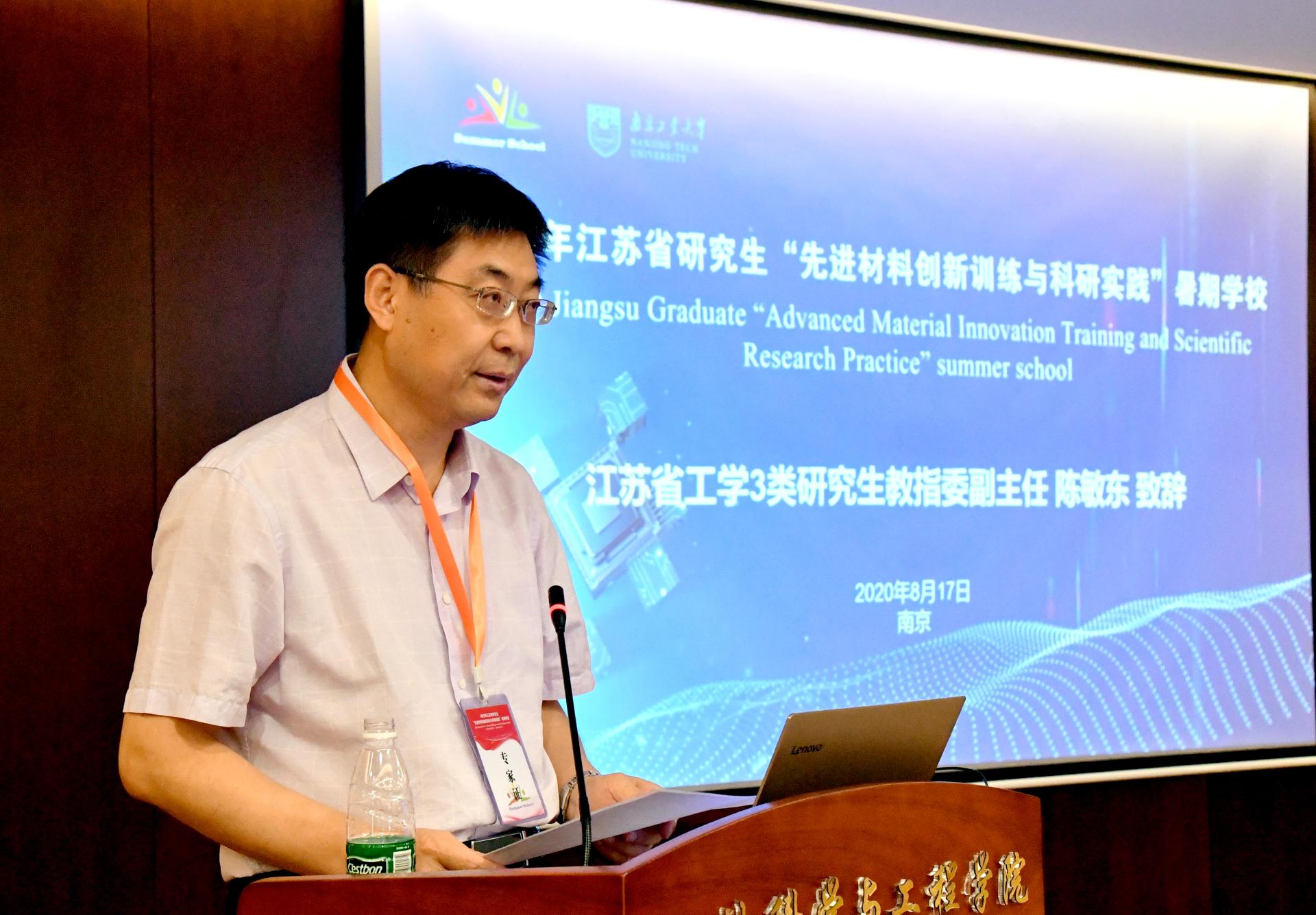 江苏省工学3类研究生教指委陈敏东副主任在讲话中高度赞扬了材料学院举办的历次科研创新实践活动,他介绍了本次暑期学校的基本情况,对本次暑期学校的举办也寄予深切的期望。