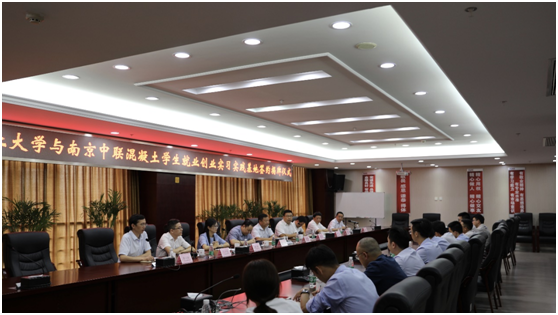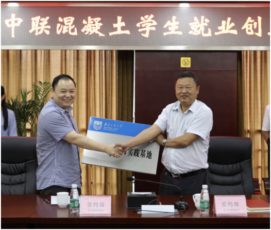 7月24日,我院与南京中联混凝土有限公司举行大学生“就业创业实习实践基地”签约暨授牌仪式。我校学生事务部副部长张涛、材料学院党委副书记考宏涛、学生事务部就业办副主任刘全振、材料学院团委书记戴惠、南京中联混凝土有限公司副总经理雷素林、总工程师潘金敢、副总工程师王子龙、技术中心主任柏立果、人力资源部部长王祥存等参加仪式。