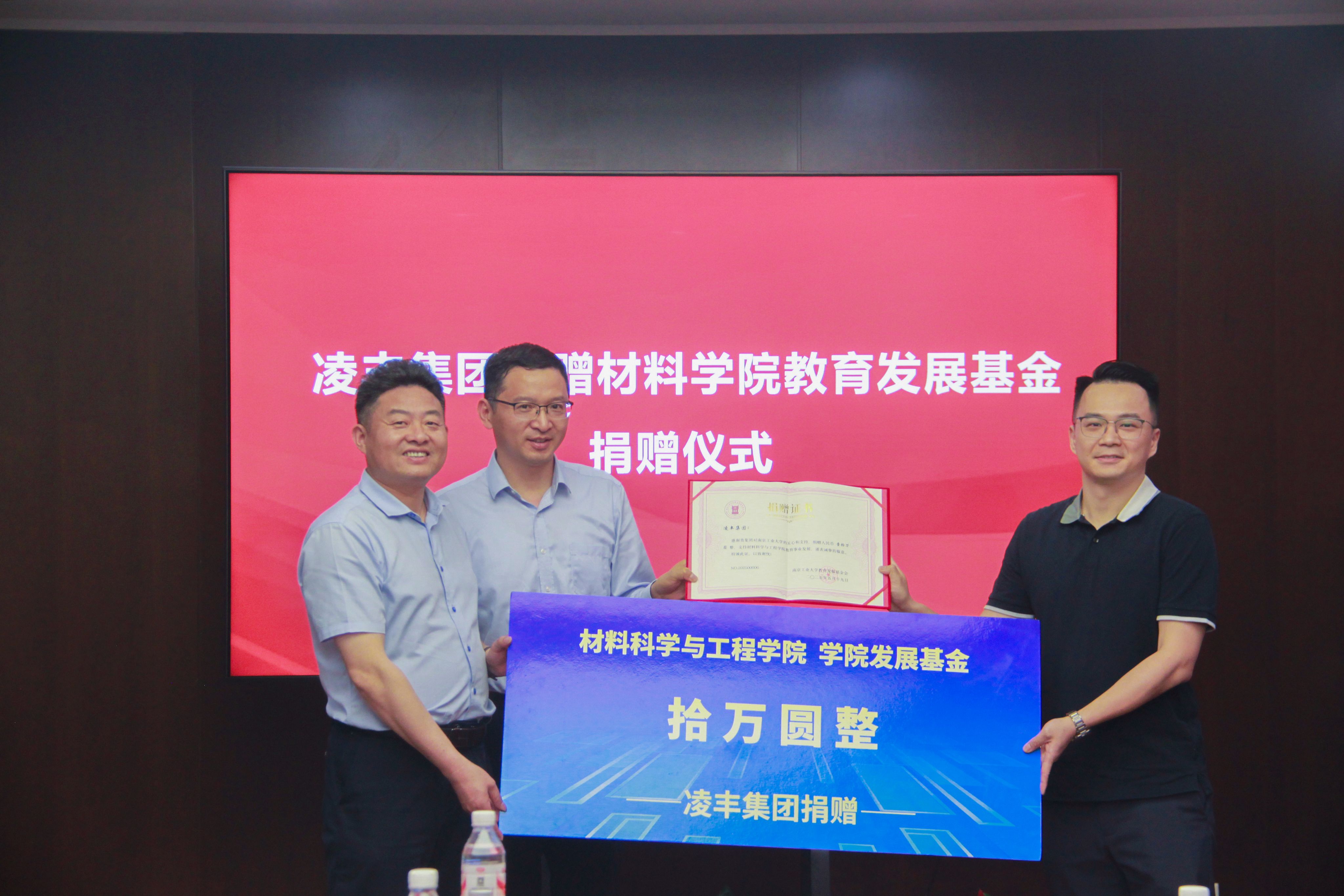 凌丰集团董事长叶逾向学校捐赠了10万元教育发展基金,太阳集团处处长黎能进、教务处处长陆春华代表学校接受捐赠,并授予捐赠证书。