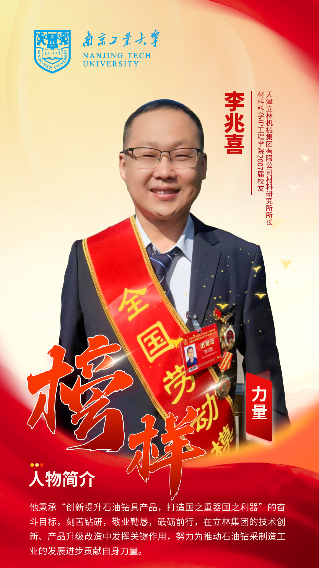 2025年4月28日,庆祝中华全国总工会成立100周年暨全国劳动模范和先进工作者表彰大会在北京人民大会堂隆重举行。中共中央总书记、国家主席、中央军委主席习近平出席大会并发表重要讲话。我院复合材料专业2007届优秀校友、天津立林机械集团有限公司材料研究所所长李兆喜荣获“全国劳动模范”殊荣。