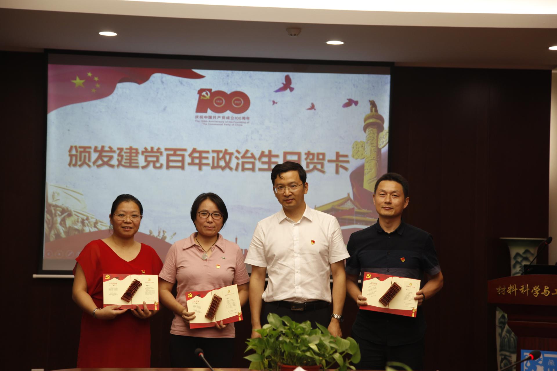6月29日下午,材料学院党委在润德楼A518会议室举行“红心向党”集体政治生日会,为入党整5、10、15、20、25、30周年的60名师生党员集体过“政治生日”,学习习近平总书记在“七一勋章”颁授仪式上的重要讲话。活动由党委副书记石防震主持,学院党委委员、党支部书记参加了学习会。