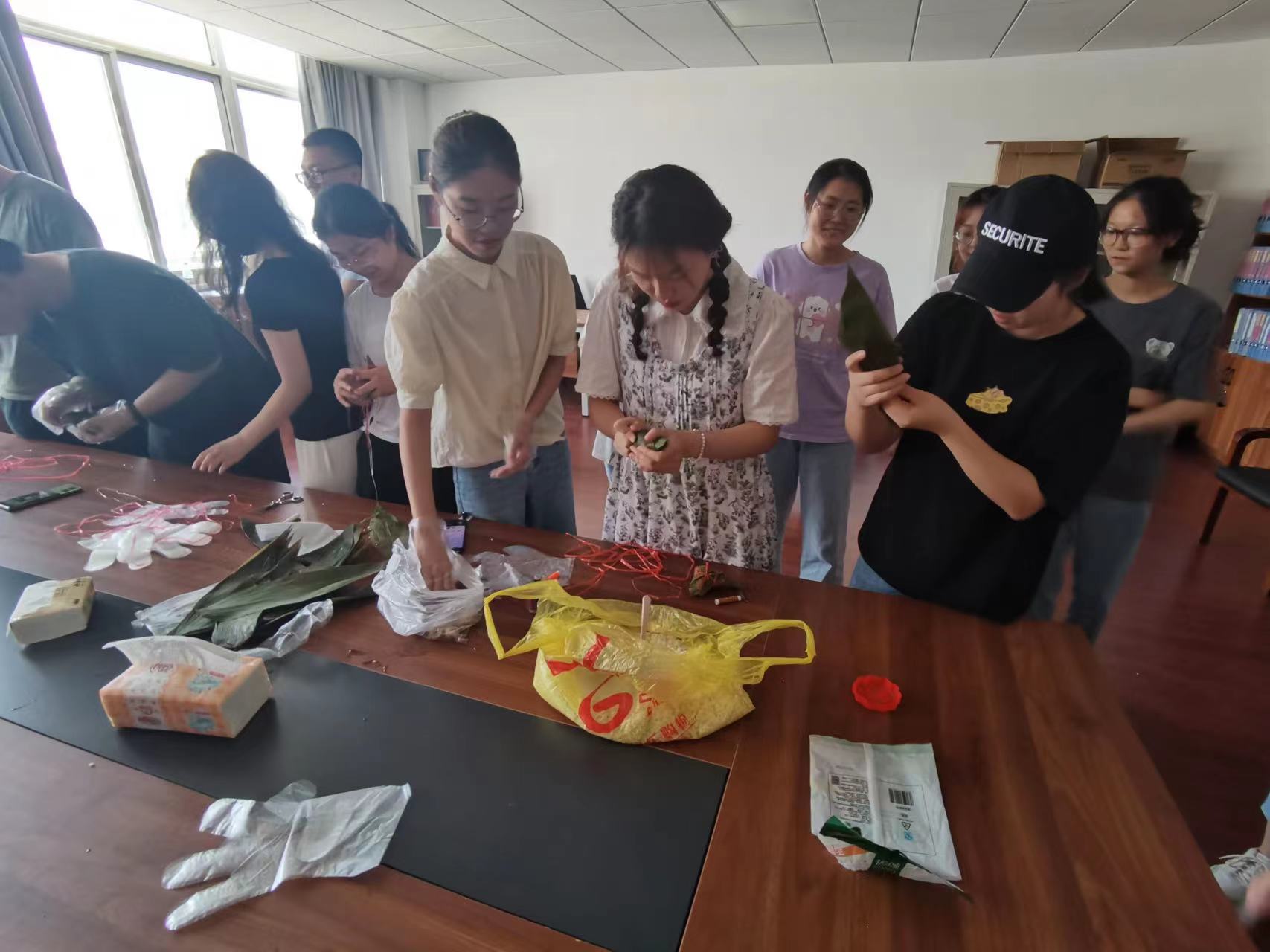 党支部统筹部署、精心策划了此次主题党日活动。活动伊始,支部支委为大家讲述了端午习俗和爱国诗人屈原的感人故事,带领大家走近端午、了解端午、品味端午,在感受端午氛围的同时提升了在场所有同学对中国传统文化的兴趣,激发了同学们投身科研攻坚克难的爱国之志。随后,同学们一起动手包香粽。很多同学都是第一次包粽子,叠粽叶、填馅料、裹粽子、扎绳子,小心翼翼地完成每个步骤,从谨慎到熟练,从陌生到熟悉。粽叶翻飞间,一只只形态各异、玲珑优美的粽子就浮现在大家的眼前。大家相互学习,相互帮助,气氛分外热烈。最后,这些由同学们亲手包好的粽子在经过蒸煮后被送到老师、同学以及为师生服务的后勤阿姨们手中,为他们送上一份真挚的节日问候。