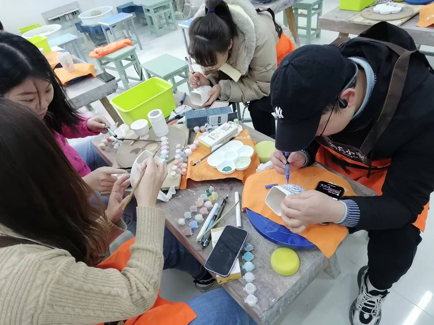 本次活动涵盖生坯绘画、捏雕制作、拉坯成型等内容。在学院刘杰老师的指导下,经过老师们的精心制作,陶艺作品逐渐成型,制作了一批笔筒、摆件、泥塑等作品。活动现场,老师们热情高涨,仿佛又回到了“玩泥巴”的童年,给大家带来了一次身心上的放松。