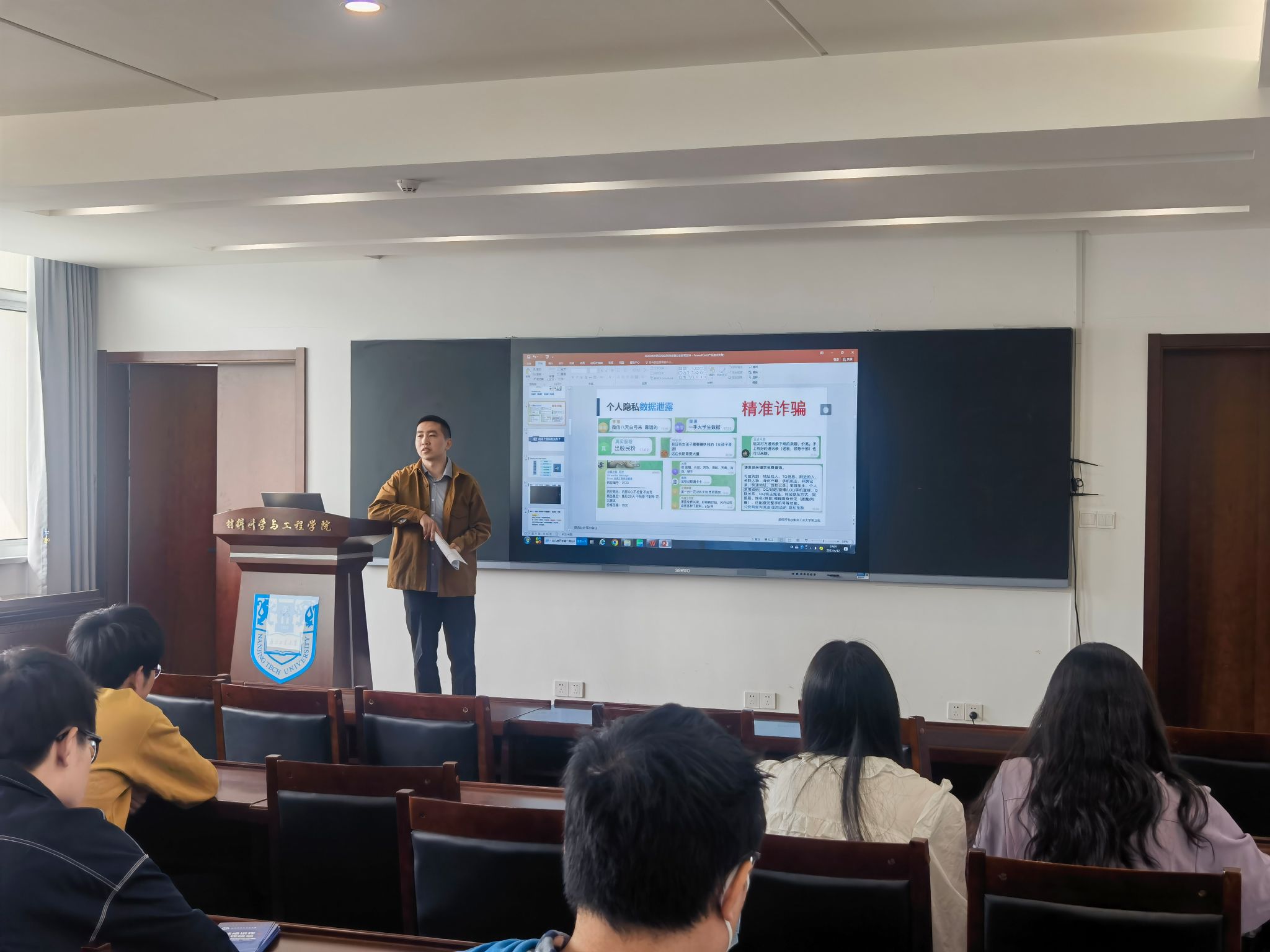 活动中,党支部党员向参加活动的学生干部发放防诈宣传册,并就其中重要事项进行了宣传解读。党支部书记张宇结合PPT从诈骗团伙的专业性、常见诈骗类别手段、防范要点三个方面为大家进行了讲解,特别着重强调了网络交友诈骗、游戏交易骗局、刷单诈骗等和学生关系密切的骗术套路,提醒同学们面对“天上掉‘馅饼’”要擦亮双眼,牢记“六个一律”和“八个凡是”。