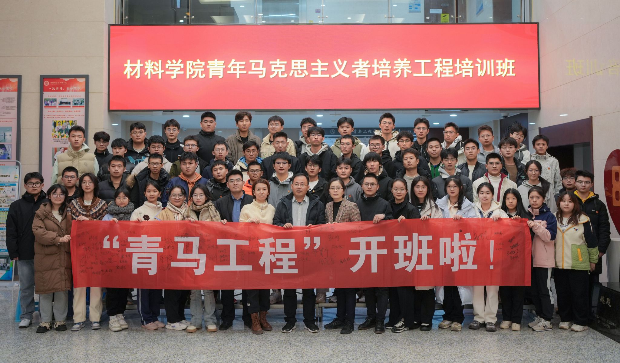 本期青马工程培训班特邀马克思主义学院青年教师朱丽晖为主讲教师,帮助学员们提升理论素养,感受新时代青年的责任担当。石防震为朱丽晖颁发主讲教师聘书,希望学员们在朱老师的授课中见真知,将理论转化为实践中的行动力。王安全向培训班代表授予“青马工程”班旗。骆超男作为学员代表号召当代青年应以马克思主义为思想引领,积极学习党的先进理论,在实干中提升自我、服务同学、回馈社会。开班式在全体学员的宣誓声中落下帷幕。