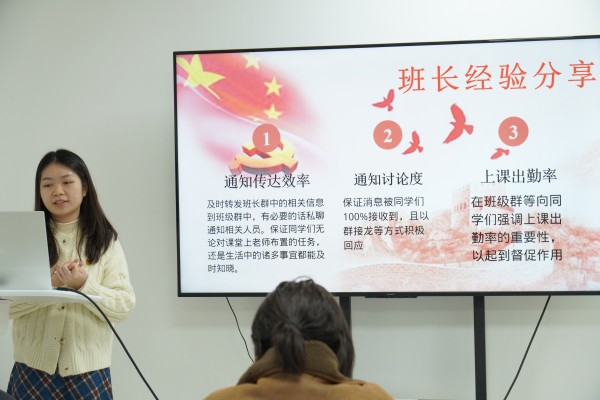 在座谈会的最后环节,组织委员白阳鑫和宣传委员艾小天与新生骨干们交流了作为班委的初心。希望新生骨干们能够具备强烈的责任心,全心全意为同学们服务;恪守职责,认真负责地完成各项任务;积极参与各类活动,为班级争光;团结同学,激发大家参与年级活动的热情;同时保持思想的先进性,积极向上,拥有宽广的胸怀。