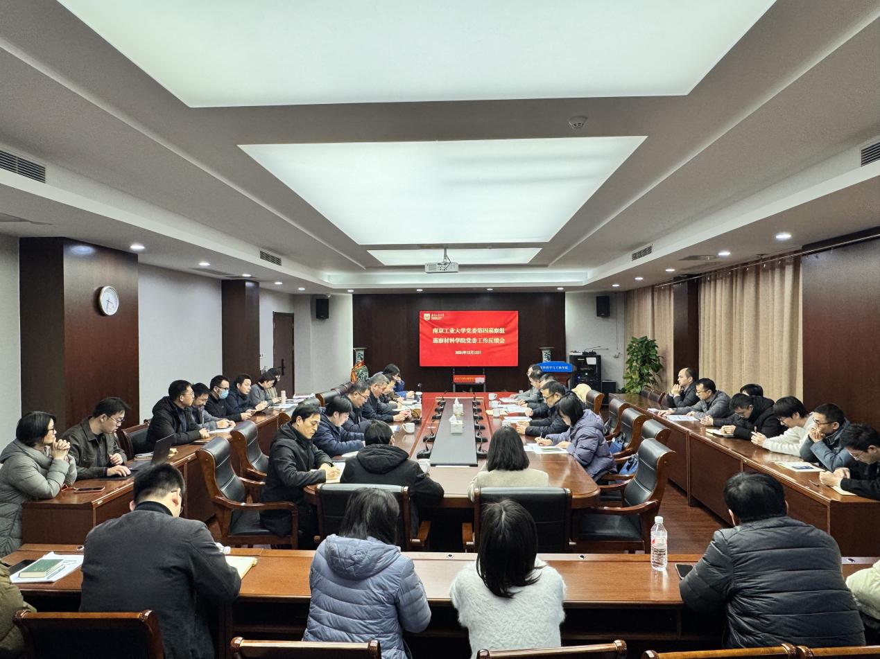 根据学校巡察工作安排,2024年12月12日下午,校党委第四巡察组向tyc234cc 太阳成集团党委反馈巡察情况。校党委常委、副校长、第四巡察组组长陆伟东代表巡察组向材料学院领导班子进行了反馈,并提出了整改要求,学院党委书记高树军同志主持会议并作表态发言。