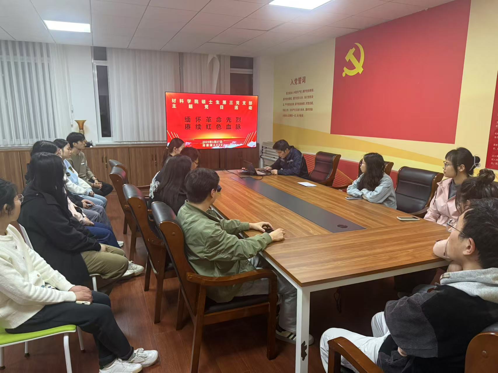 缅怀先烈,继往开来。清明节是我国传统春祭节日,为深切缅怀革命先烈,赓续红色血脉,tyc234cc 太阳成集团硕士生第三党支部于3月27日晚在润德楼A520开展“缅怀革命先烈,赓续红色血脉”主题党日活动。支部全体党员参加。