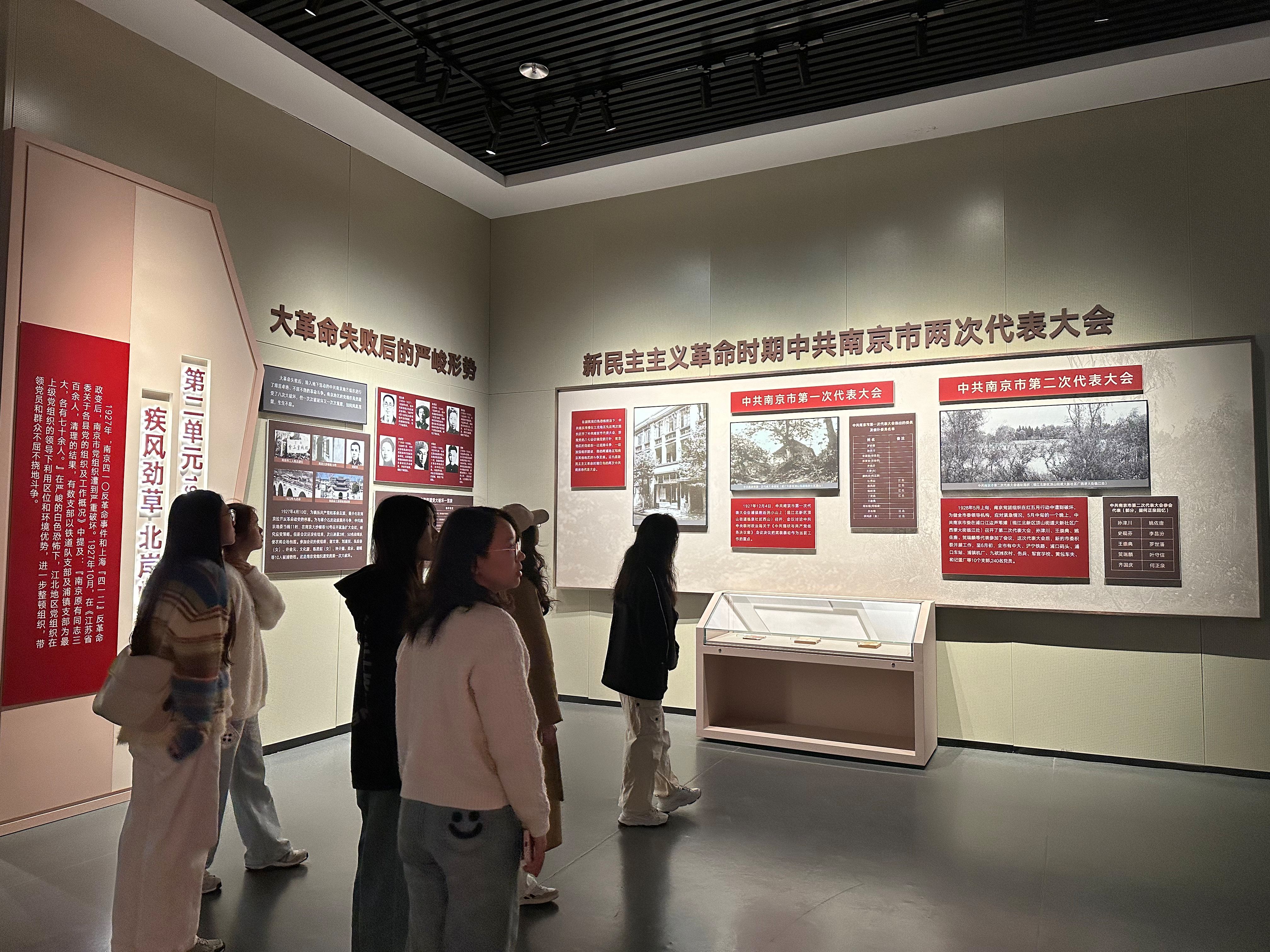 活动伊始,全体党员佩戴党徽、整齐列队,高举右手在党旗前庄严地宣读入党誓词。誓言铿锵有力,响彻展馆,表达了党员们对党的忠诚和为共产主义事业奋斗终身的决心。宣誓仪式后,党员们走进红色文化展厅,沿着“土地革命—抗日战争—解放战争”的历史脉络,重温江北地区革命先烈的英勇事迹。展厅内,一幅幅珍贵的历史图片、一件件斑驳的革命文物、一段段生动的影像资料,全景式展现了江北地区党组织从诞生到壮大的光辉历程。在面对“江北抗日英雄谱”展墙时,余九儿同学动情表示:“先烈用生命换来今日安宁,作为新时代党员,我们更要立足岗位,用实际行动传承红色基因。”
