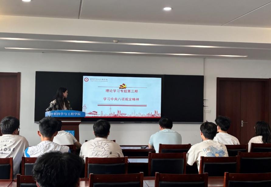 材料学院研究生会充分认识深入贯彻中央八项规定精神学习教育的重要意义,通过集中学习与个人自学,认真进行学查改,进一步增强纪律意识和规矩意识,培养优良学风和学术道德,杜绝学术不端行为,提高学术研究质量。今后材料学院研究生会将继续坚持定期开展理论学习会,带动全院研究生掀起理论学习热潮,持续推动党的创新理论入脑入心入行,坚定报国志,挺膺强国行,弘扬奋发有为的进取精神,营造风清气正的学术环境。