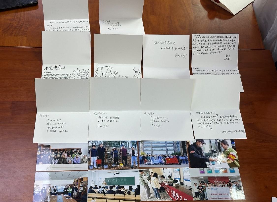 一纸祝福贺卡,温情话别校园时光。会上,党支部党员为即将离校的毕业生党员准备了特别定制的祝福贺卡,每一张贺卡都由师弟师妹亲手书写,既有真挚的祝福,也有幽默风趣的插画,饱含暖暖同窗情谊。支部书记金蓓蓓勉励毕业生党员们要始终牢记党员身份,在工作岗位上发挥先锋模范作用,将材料人的精神与共产党员的使命担当紧密结合。