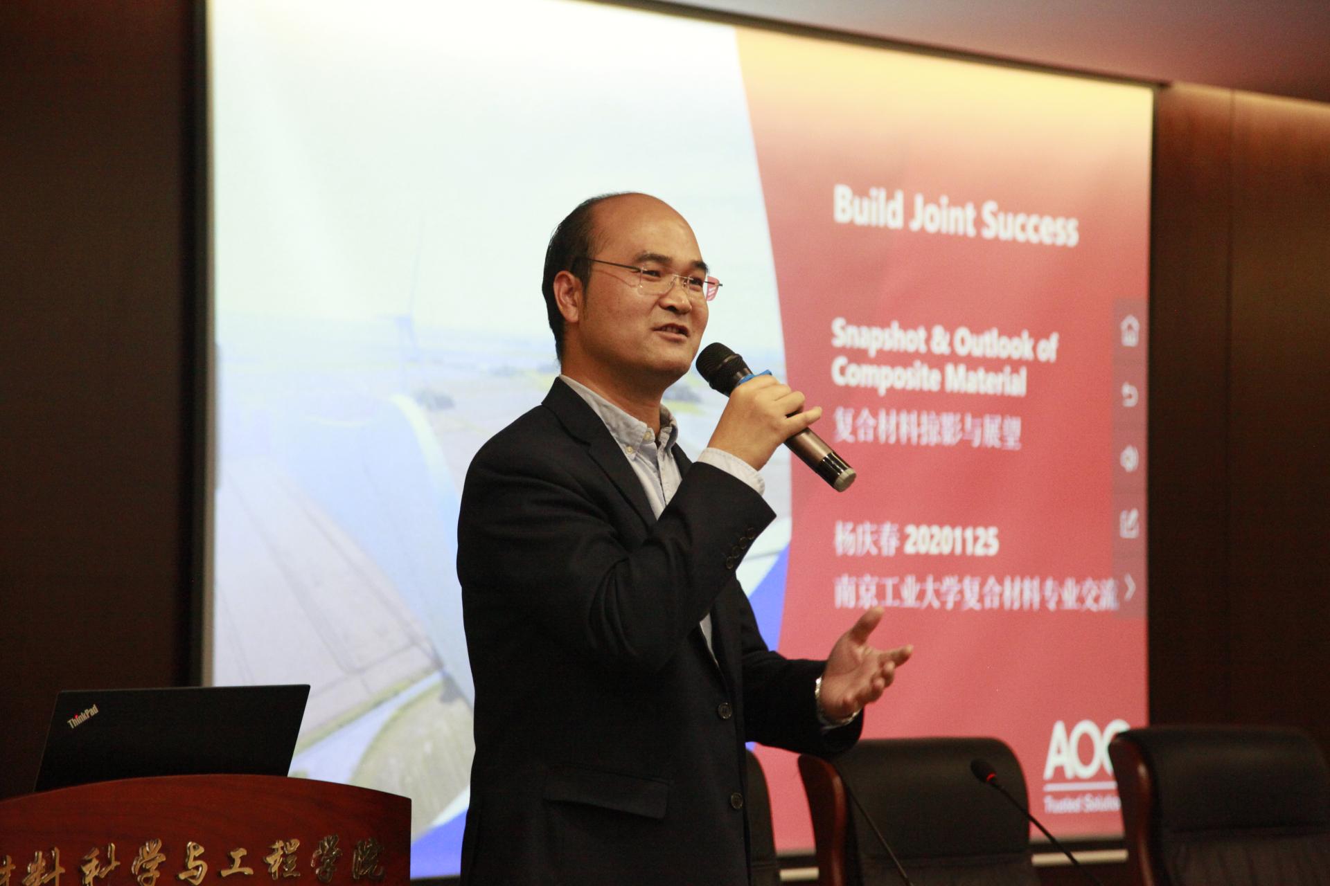 杨庆春学长结合帝斯曼到AOC不断壮大的产业发展历程,向同学们讲述了自己十八年来孜孜不倦的职业追求、敬业爱岗的职业精神以及脚踏实地的职业信念,通过树脂基复合材料在国民经济和百姓生活中的广泛应用,展示了未来人与自然相融合的复合材料发展愿景。杨学长对人生的感悟和对复合材料持续发展新未来的阐述,让在场的同学们兴趣激扬、踊跃互动。在对复合材料实际发展和应用的深入认知中,同学们表达了对未来职业生涯扬帆起航、驶向美好的希望。