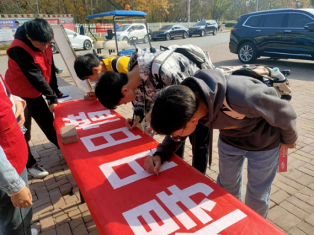 第二站,11月20日志愿者来到亚青食堂门口开展“节约粮食,光盘行动”的倡议活动。志服部储瑞乾会同志愿者在亚青食堂一楼门口摆好桌子和海报牌,并将印有“节约必须年年提,粮食还得日日惜”的横幅固定在桌上,向同学们宣传节约粮食的重要性同时,邀请大家在横幅上签上自己的名字,以此来表达为节约粮食出一份力的决心。志愿者希望这样的活动可以感染到身边的同学们,使大家养成珍惜粮食、杜绝浪费的习惯,从每个人做起,共同打造更美好的“光盘”食堂。
