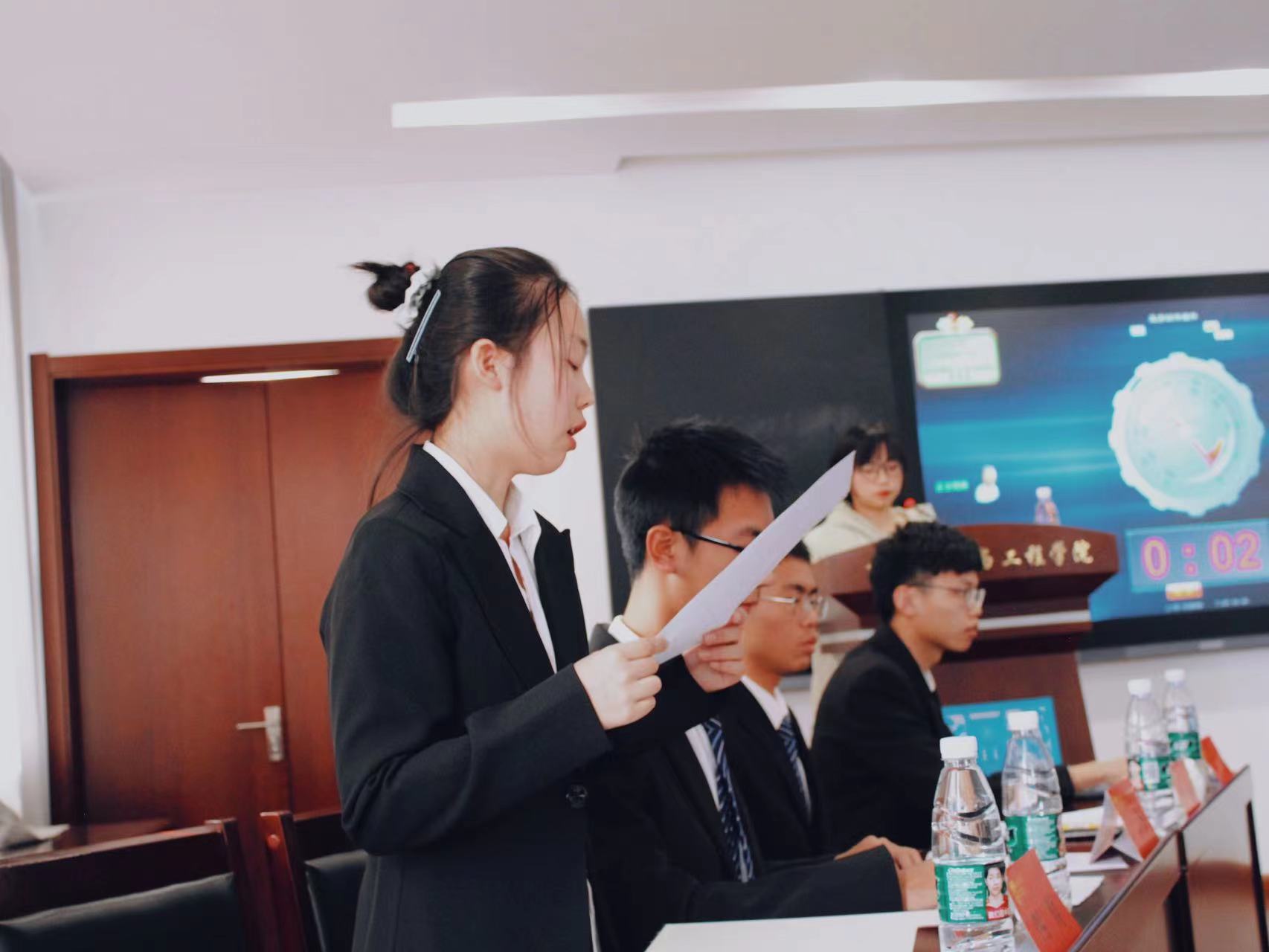 本次比赛由材料学院21级辅导员金蓓蓓老师、王旭东老师、院辩论队郁智超同学、何佳艺同学、学生会组织部丁嘉怡同学担任评委,院辩论队成员王静同学担任比赛主持人。进入决赛的两支队伍为材料类2108班和材料类2114班,此次决赛的辩题为“知识大爆炸让知识的获取更容易or更困难”。