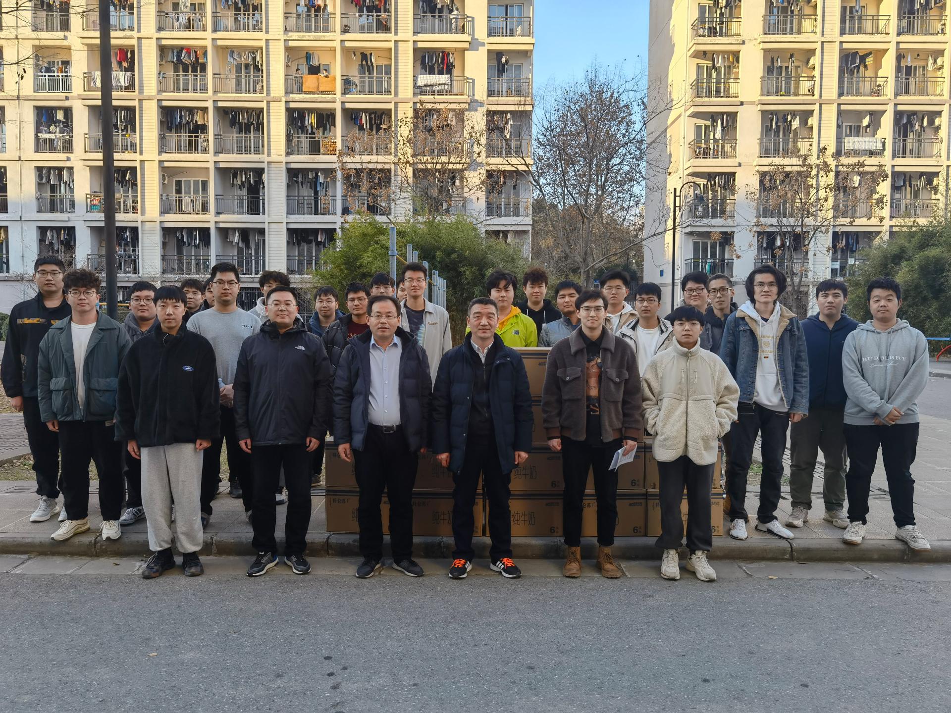 高树军书记在南苑宿舍区向备战考研的学生们表达了亲切的问候,并且细致了解了同学们复习备战、学习生活等情况,同时提醒同学们在考研竞争激烈的形势下调整好心态,切忌紧张焦躁。石防震副书记强调,在疫情防控阶段,要遵守疫情防控规定,在离校考试期间做好自我防护, 并祝愿同学们能够马到成功、“金榜题名”。最后,领导、老师们代表学院将精心准备的慰问品发放到每一位考研学子的手中,让学生真切感受到材料学院大家庭的温暖。