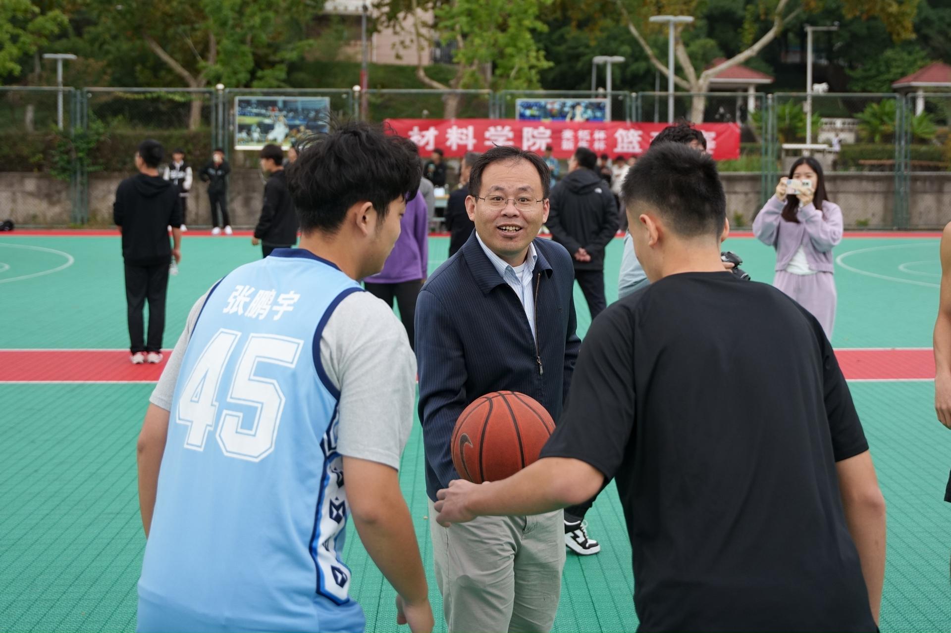 10月8日上午,材料学院2022年麦拓杯暨新生杯篮球赛在东苑篮球场正式开幕。本次比赛由学生会,全院各年级、各专业的篮球爱好者踊跃报名参赛。学院党委书记高树军、党委副书记石防震、团委书记王安全、新老生辅导员代表颜文、彭超出席本次比赛的开幕式。