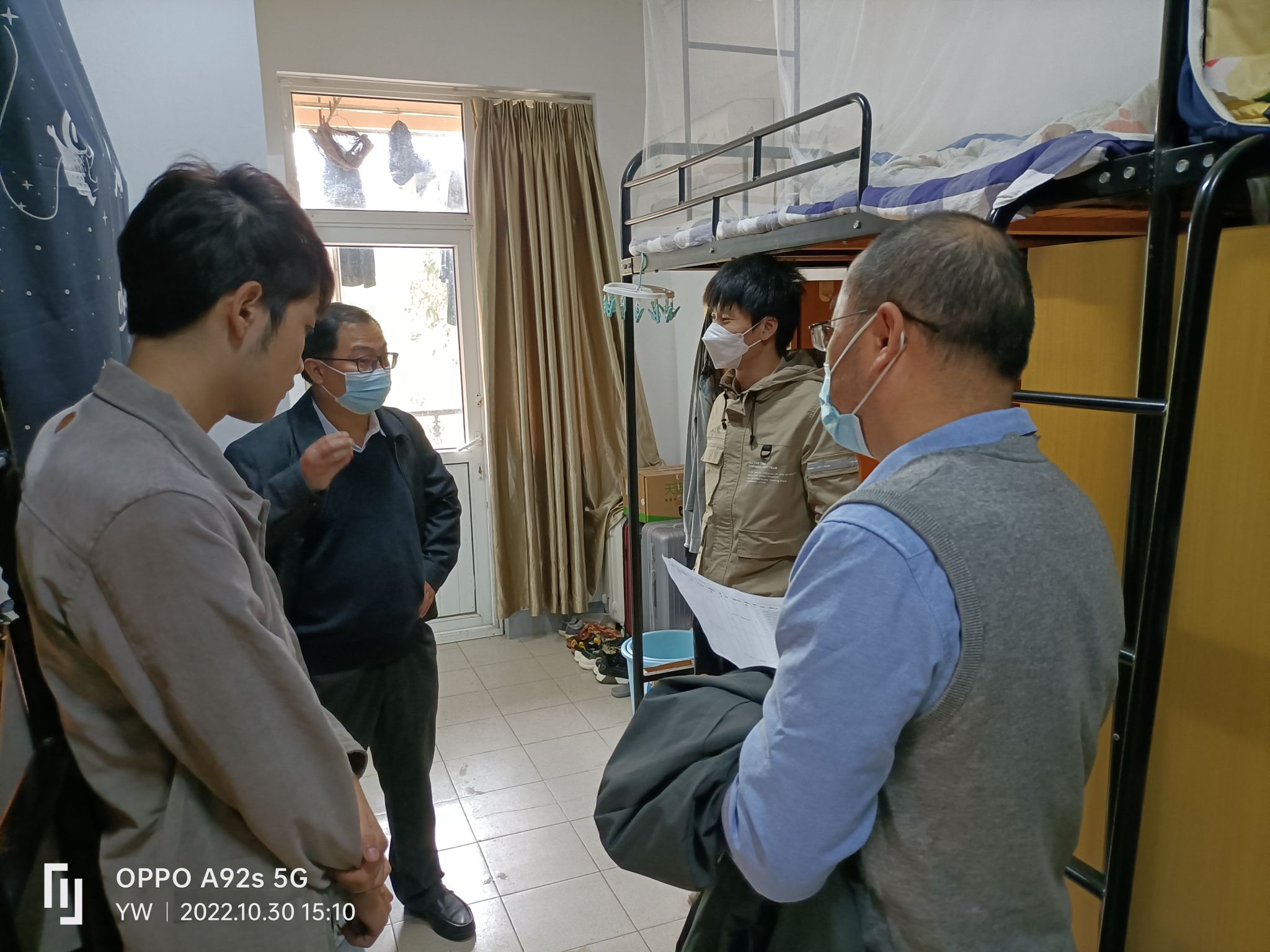 在校园临时封控期间,学生会不会紧张?线上学习效果怎样?同学们有没有什么困难?一直牵动着老师们的心。随着三轮核酸检测完成,为深入了解学生的思想动态和学习生活情况,及时帮助学生解决急难愁盼问题。10月30日下午,材料学院各教师党支部、系负责人、在校教师、辅导员60余人组成五个大组若干小组,按片区深入学生宿舍与学生谈心交流,嘘寒问暖、传递关怀。