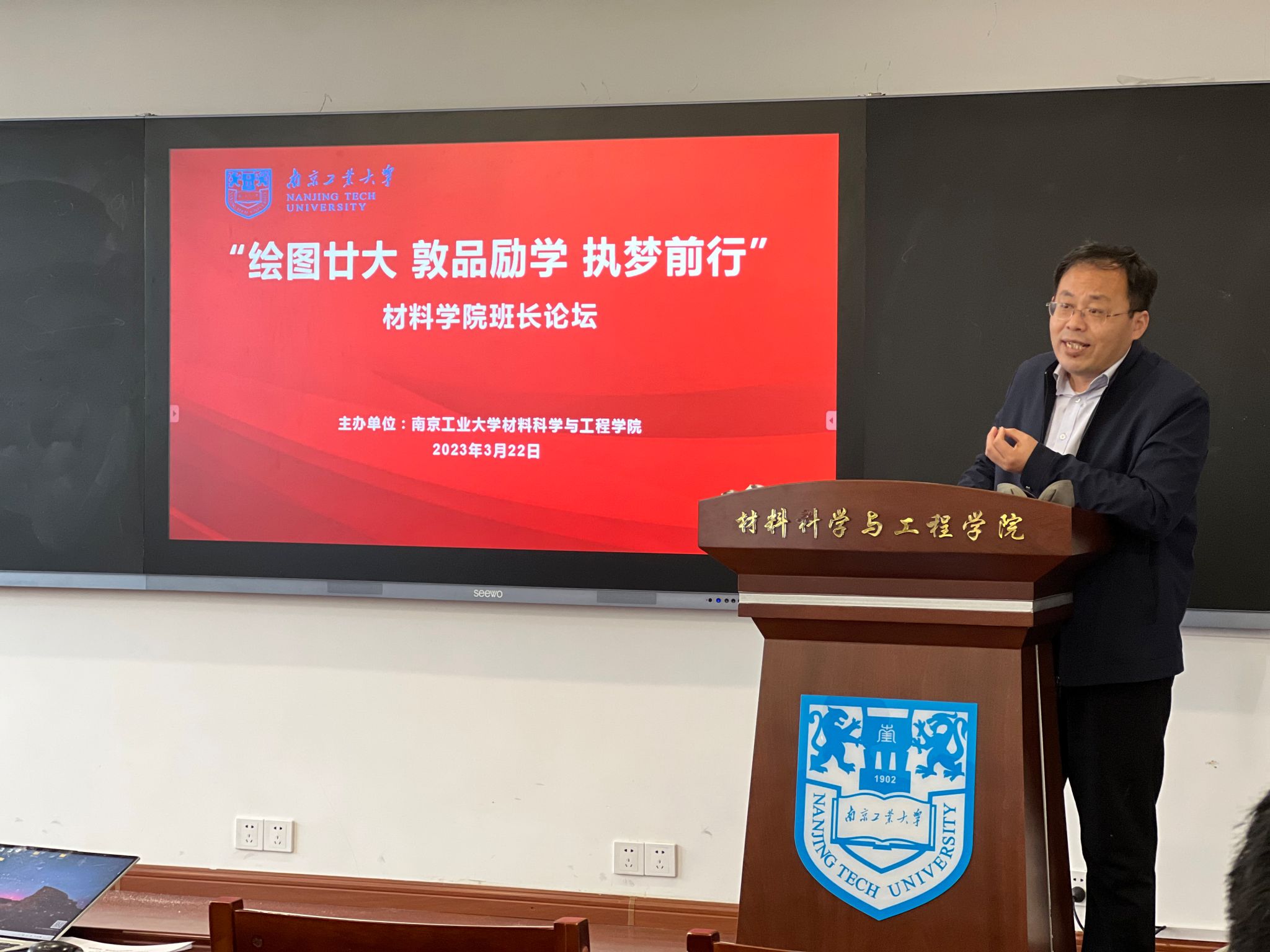 为进一步提高班级骨干能力素质,分享班级管理经验,弘扬各班级文化,培养良好的学风班风,努力实现班级素质整体提升。3月22日下午,材料学院在润德楼B511报告厅举行材料学院班长论坛。学院党委副书记石防震,学班主任丁楠,团委书记王安全,辅导员颜文、周敏等老师,以及2022级新生班级班长参加了活动。