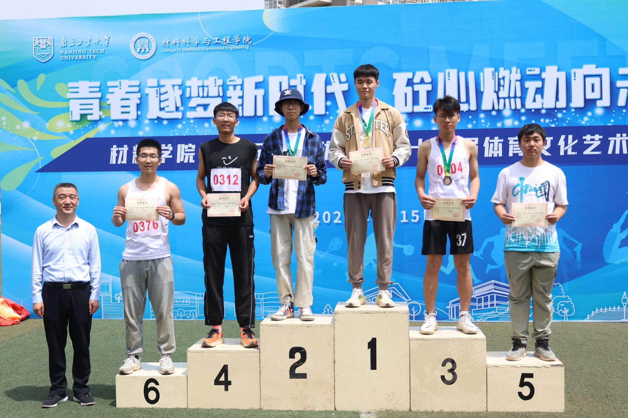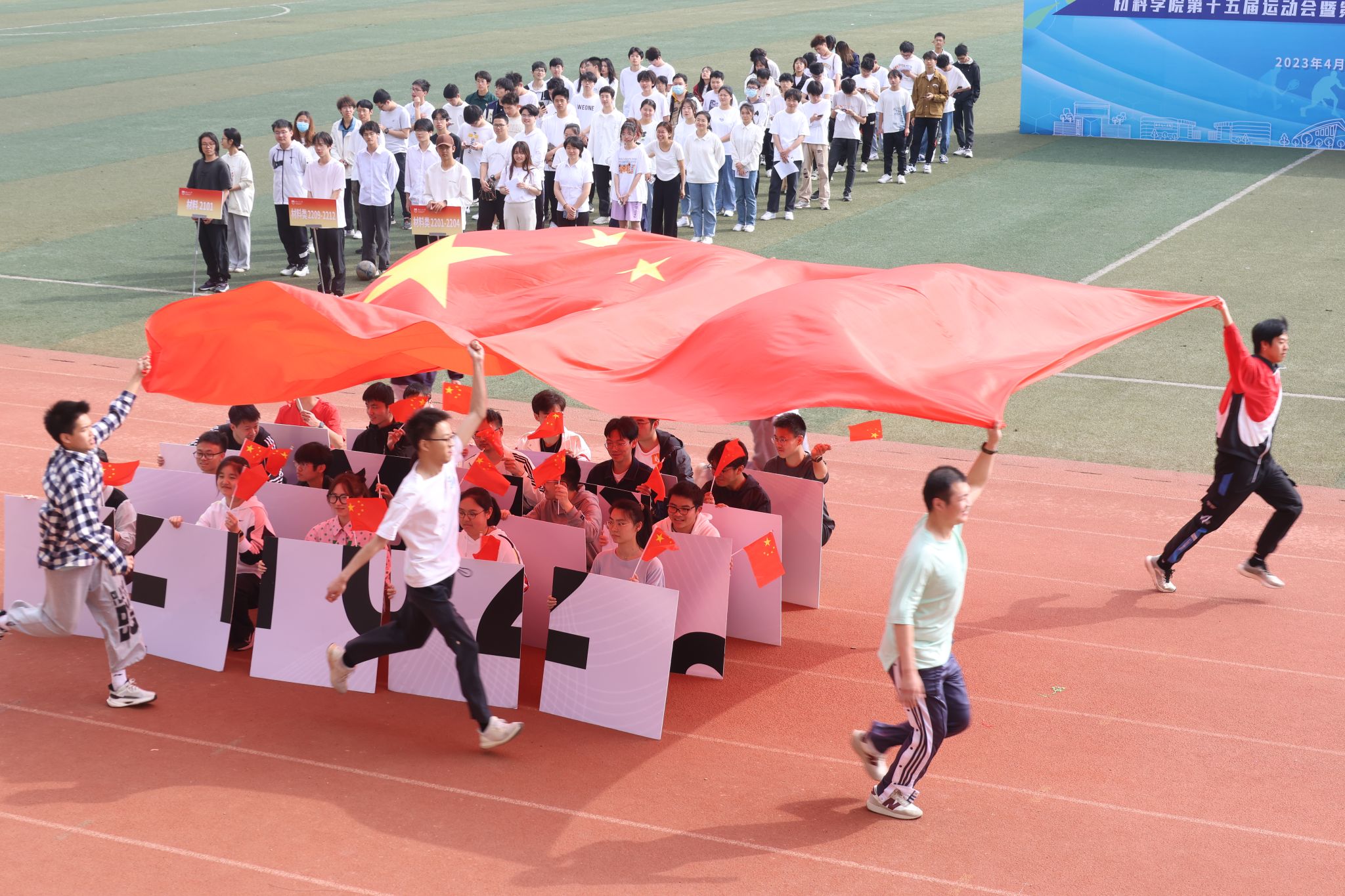 春山如笑,丽日和风。为大力弘扬体育强国精神,营造浓厚体育文化氛围,4月15日,材料学院第十五届运动会暨第十三届体育文化艺术节在江浦校区田径场正式拉开帷幕。校教务处处长陆春华、太阳集团处副处长王永刚、党委研究生工作部副部长丁贤、体育学院副院长孙欣荣以及学院党委书记高树军、院长崔升等党政领导、各系和中心主任、全体运动员、裁判员等出席开幕式。开幕式由学院团委书记王安全主持。