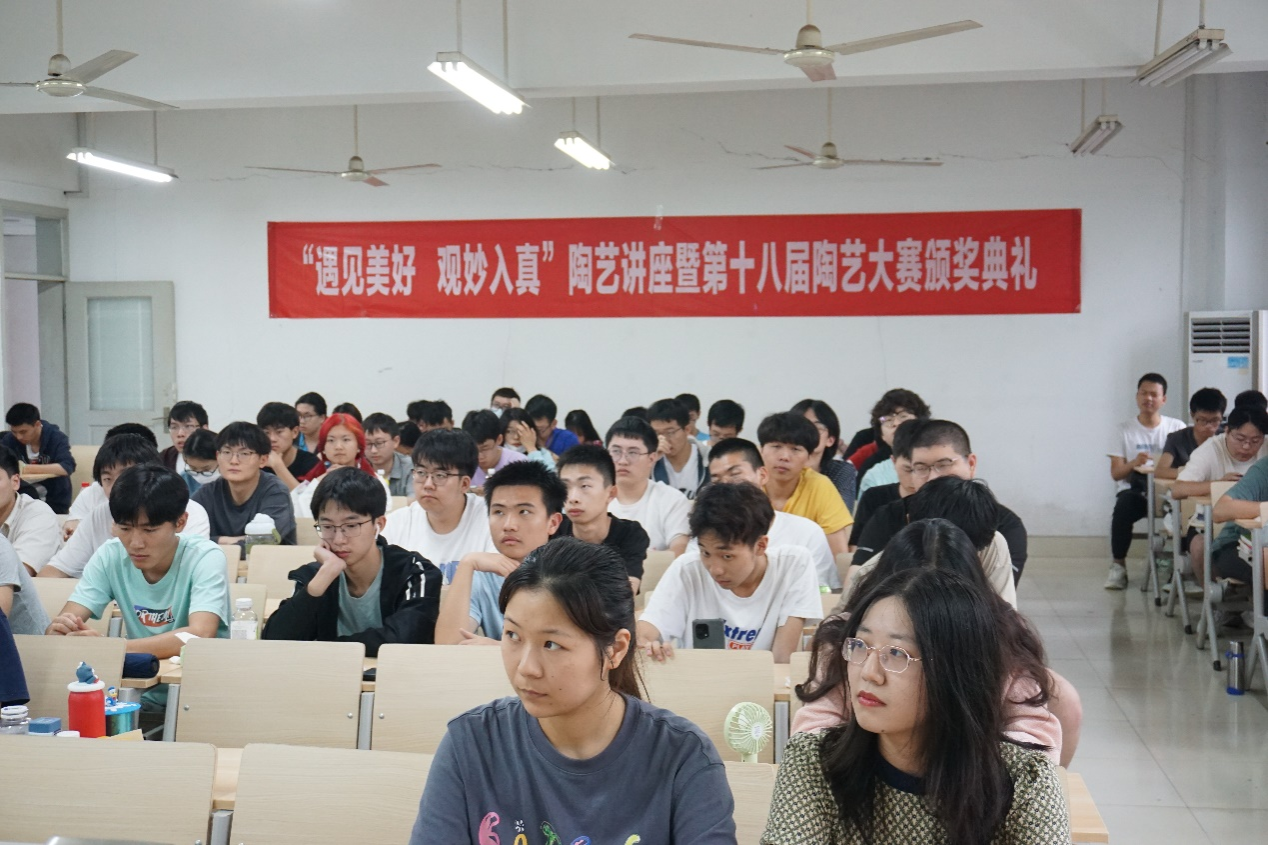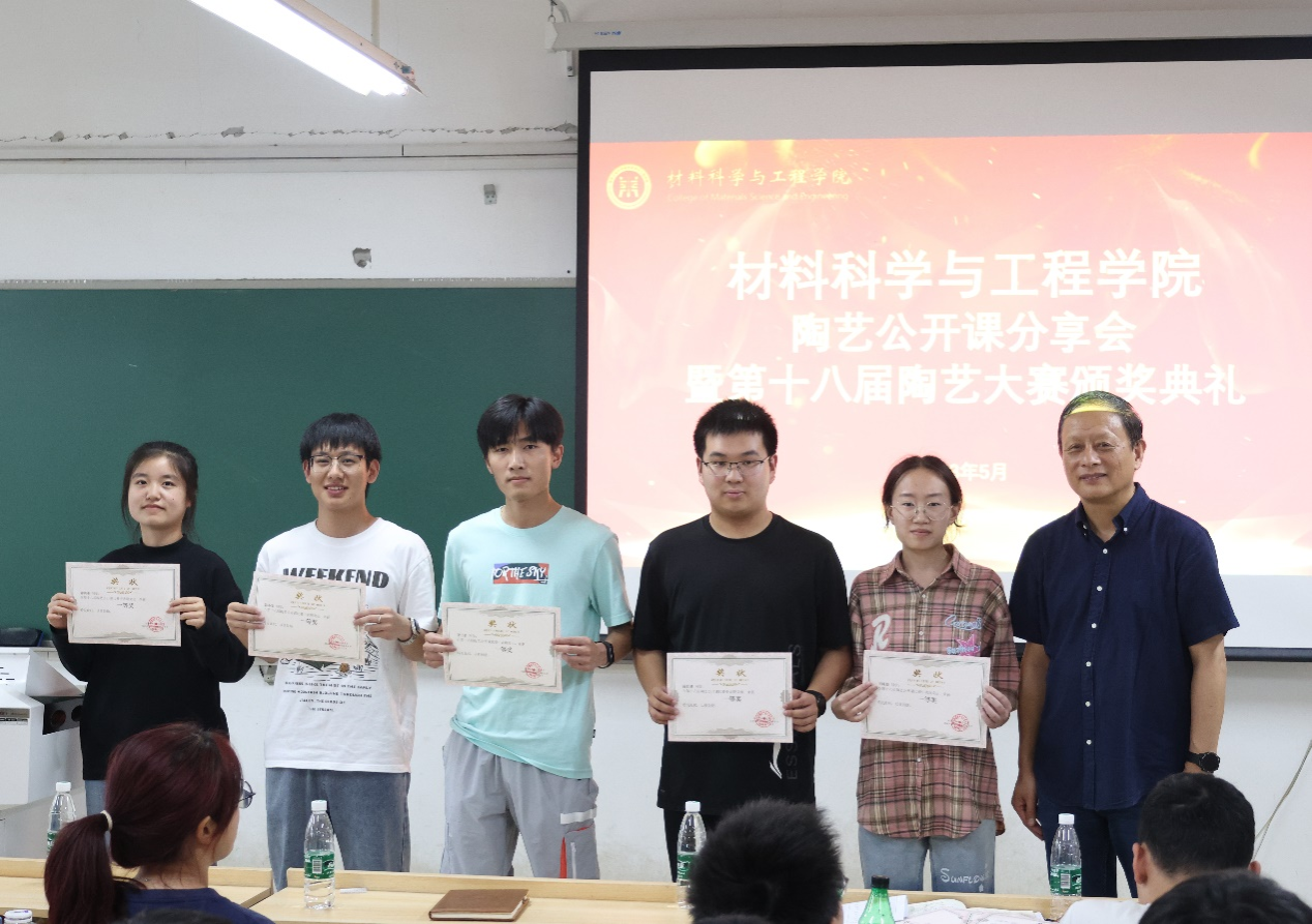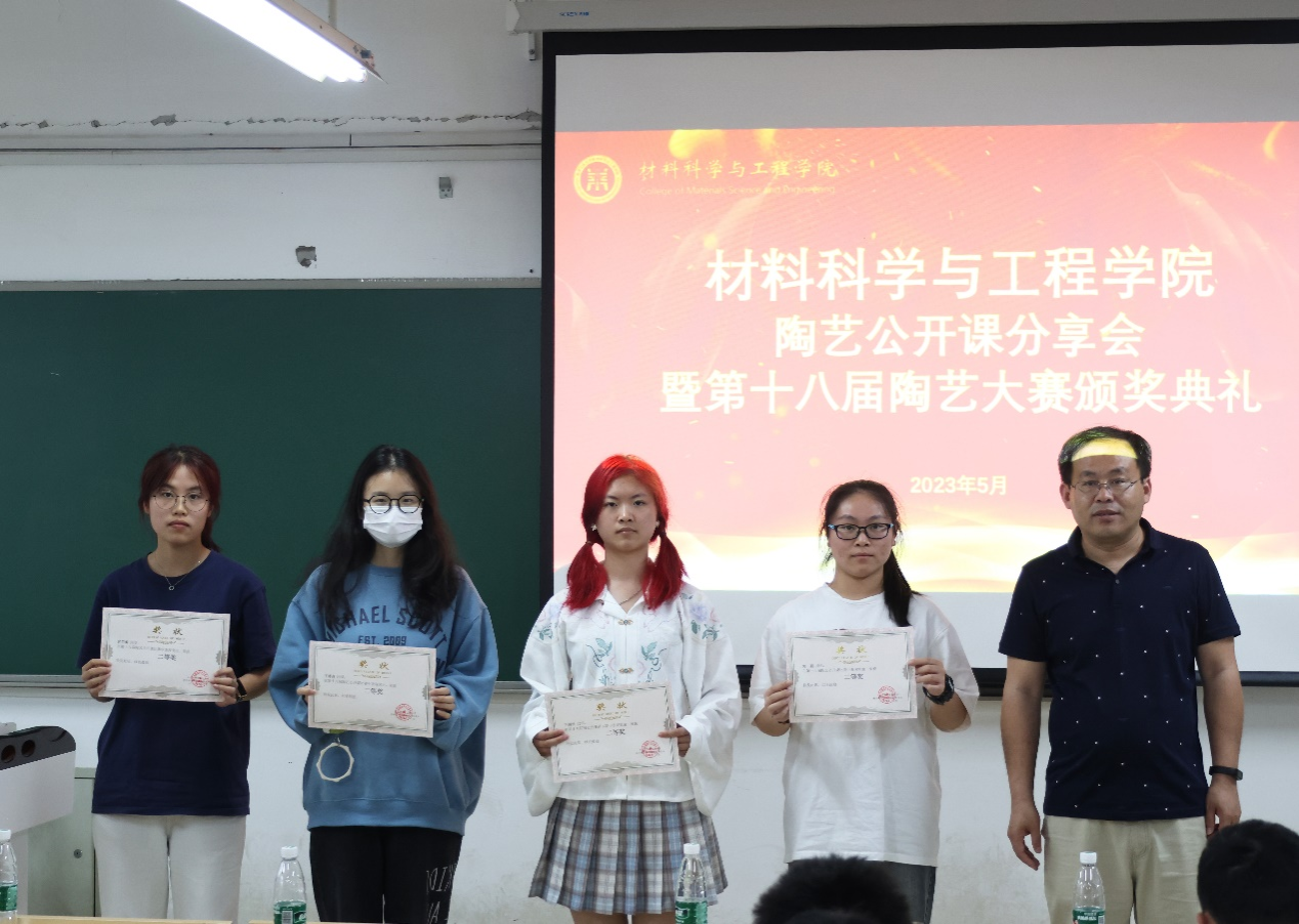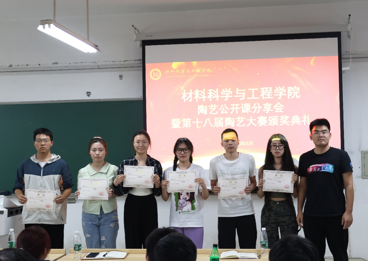 报告会后与会嘉宾为材料学院第十八届陶艺大赛获奖同学颁奖。