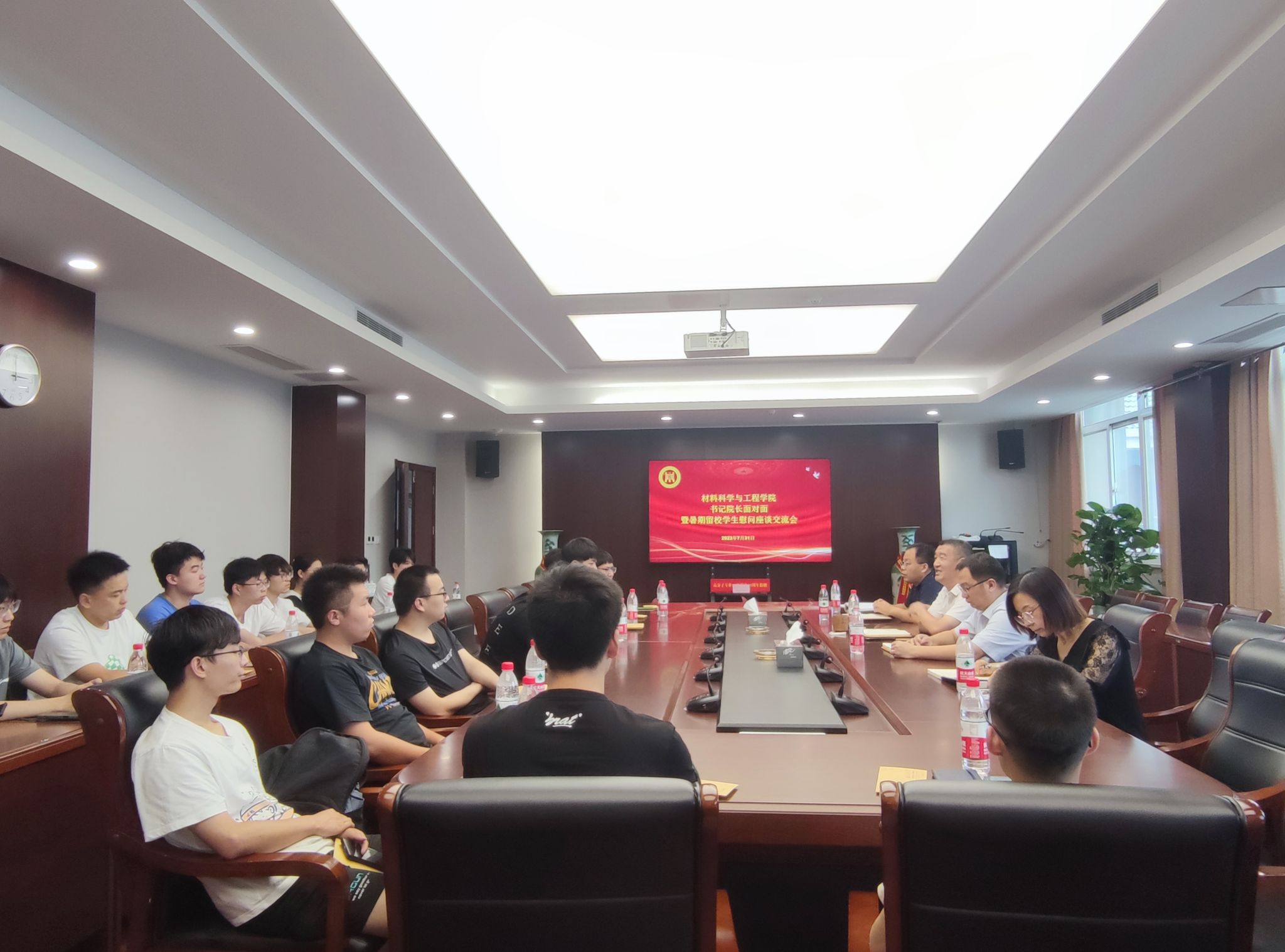 为进一步了解暑期留校学生思想动态、生活情况,真正做到教育引导不离线,安全提示不断线,关心关爱不下线,切实做好暑期留校学生的安全管理和服务保障,7月31日下午,tyc234cc 太阳成集团在润德楼A518召开书记院长面对面暨暑期留校学生慰问座谈交流会。学院党委书记高树军、院长崔升、党委副书记石防震、学办主任丁楠、辅导员彭超及20级学生代表参会。