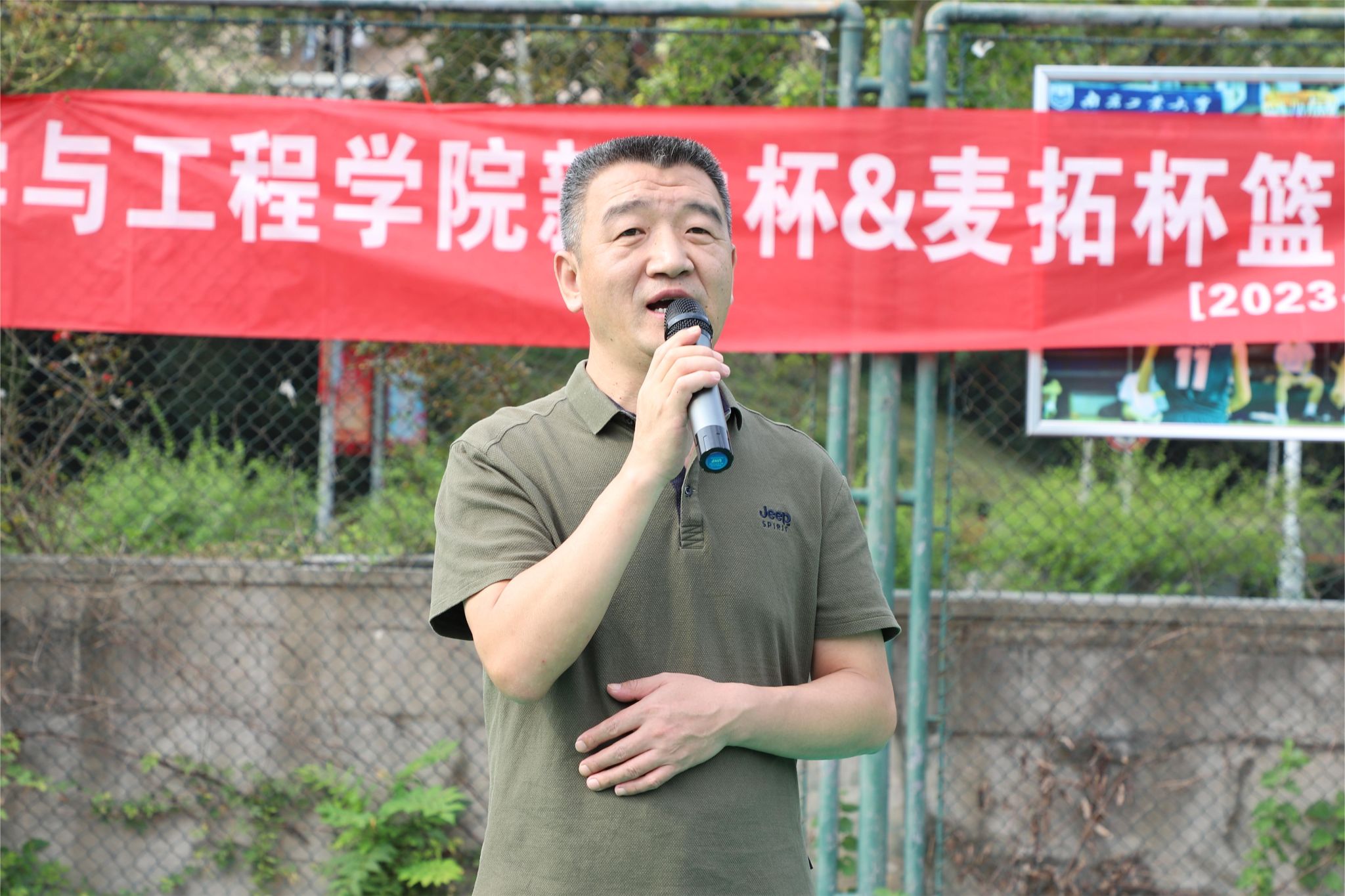 10月14日上午,材料学院2023年新生杯&麦拓杯篮球赛在东苑篮球场拉开比赛序幕。学院党委书记高树军、副书记石防震老师及各班代表队队员出席开幕式。