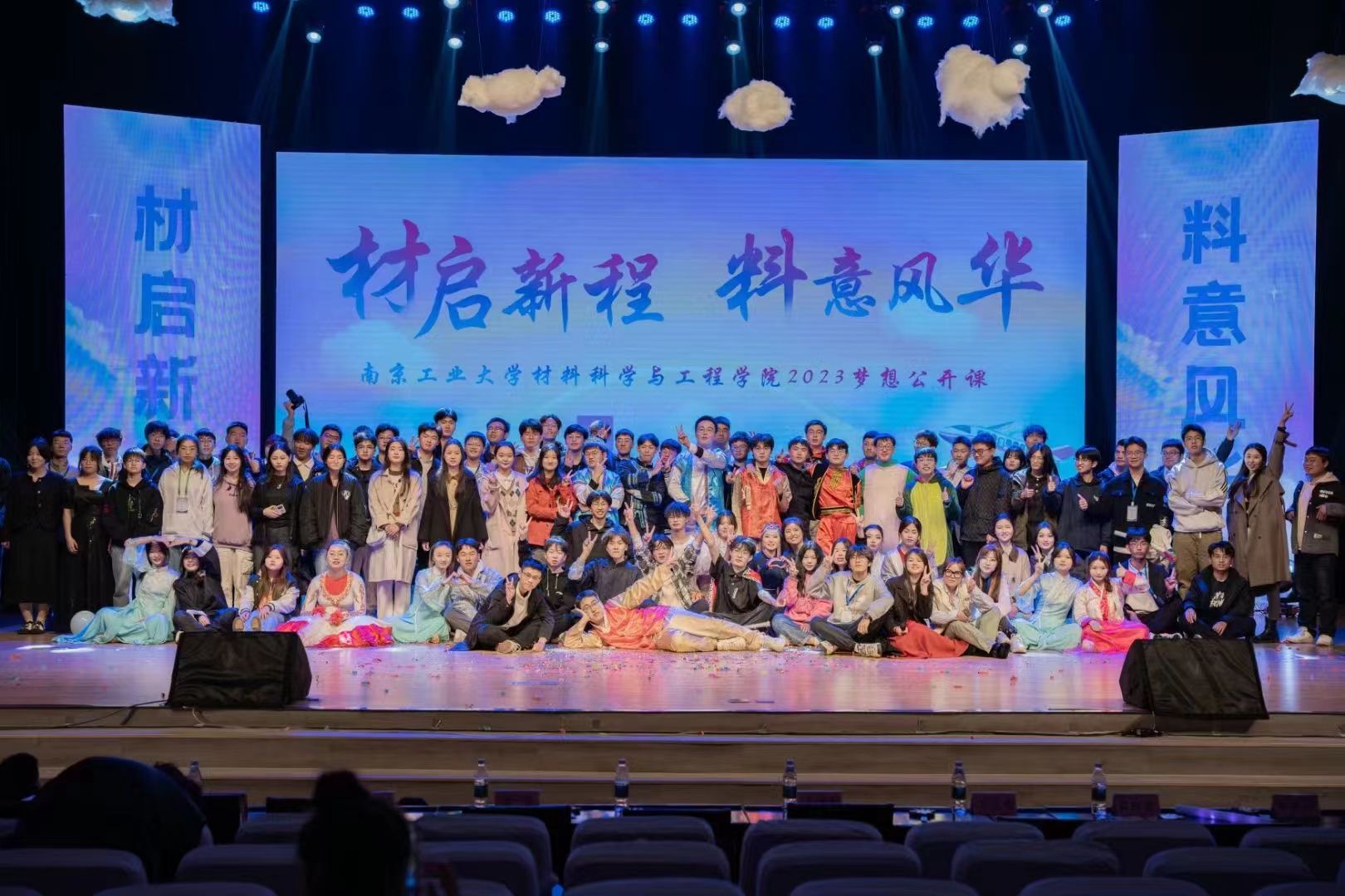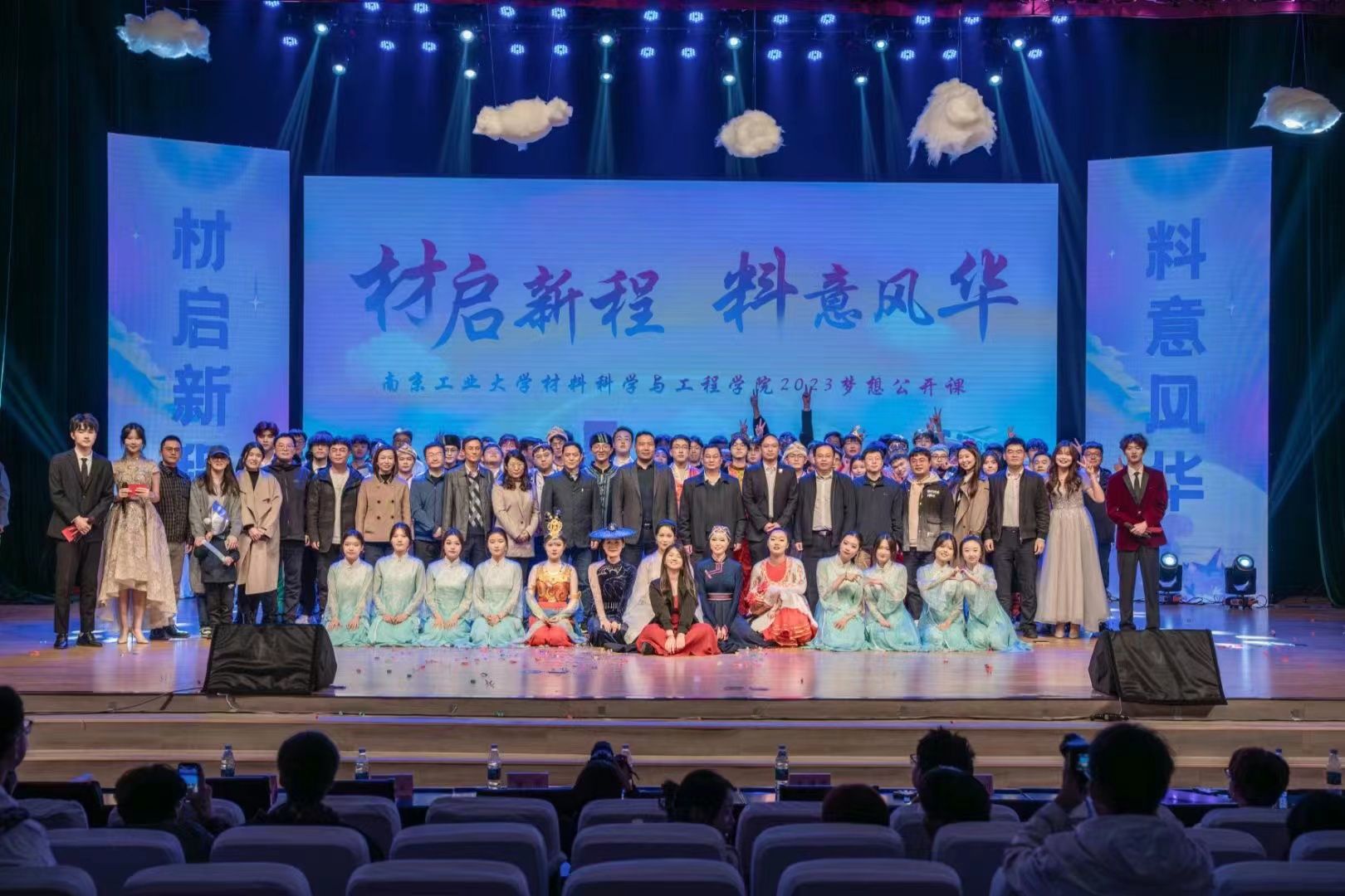 梦想公开课分为“扬帆,启新程”“逐梦,渡星海”“砼心,向未来”三个篇章,以不同形式展现了材料学院学子们丰富的校园文化生活和昂扬向上的精神风貌。授课现场,马克思主义学院王巍老师鼓励同学培养创新思维与创新能力,优秀学长刘福璞和朱建军校友分别从不同角度分享了自己大学学习与生活、创新创业的经验和收获。在汇演环节,学生编排的节目精彩纷呈,引人入胜。《这里是神奇的赛尔号》《最炫民族风》《达拉崩班班》等歌曲节目展现着年轻人的活力与风采,以音乐谱写青春的乐章;《碇步桥》《向光》《爱的协奏曲》等舞蹈节目用曼妙舞姿展示了中华舞蹈文化和达观向上的风貌;《好好学习》《大学里的那些事儿》寄托着老师们对新生的勉励与祝福。