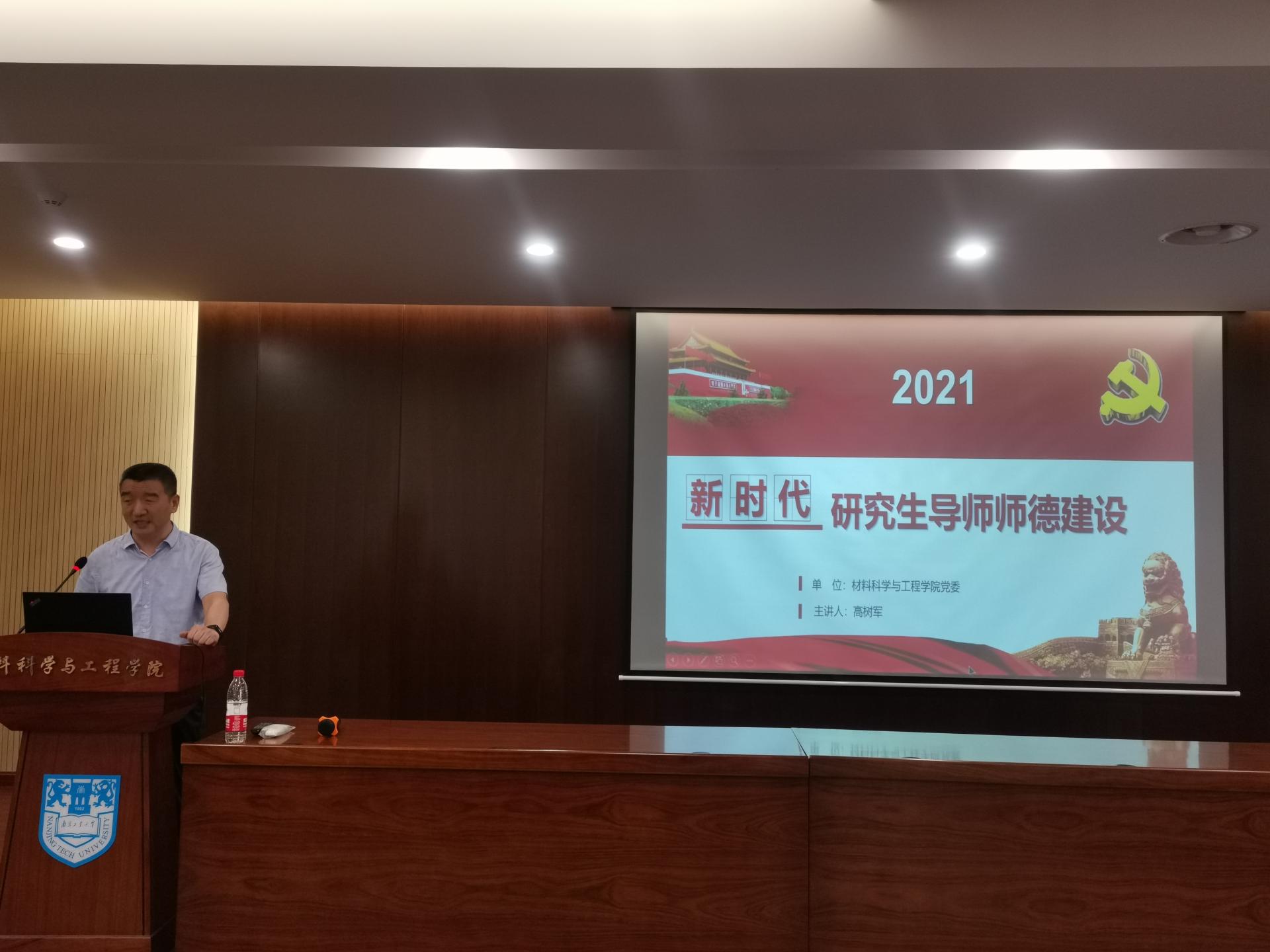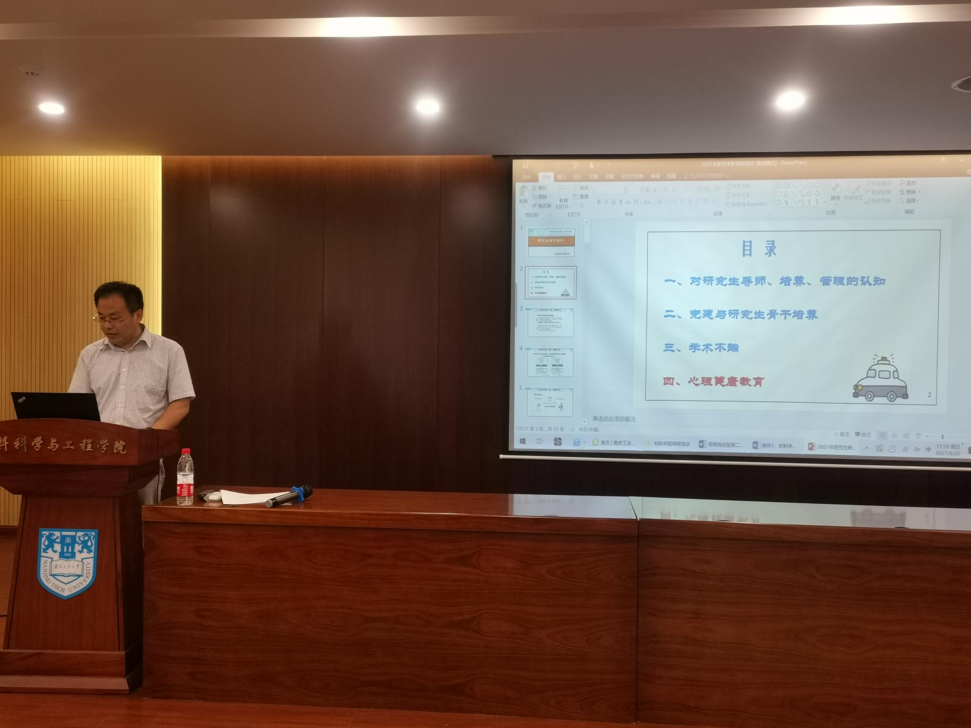 为进一步落实全国全省研究生教育会议精神,提高研究生导师履职能力,学校于6月19-20日召开了2021年全校研究生导师培训会,根据安排,6月20日上午,材料学院举行了2021年全院研究生导师培训。学院党委书记高树军、院长陆春华、党委副书记石防震、副院长崔升分别作了专题报告,学院全体导师参加了培训会。