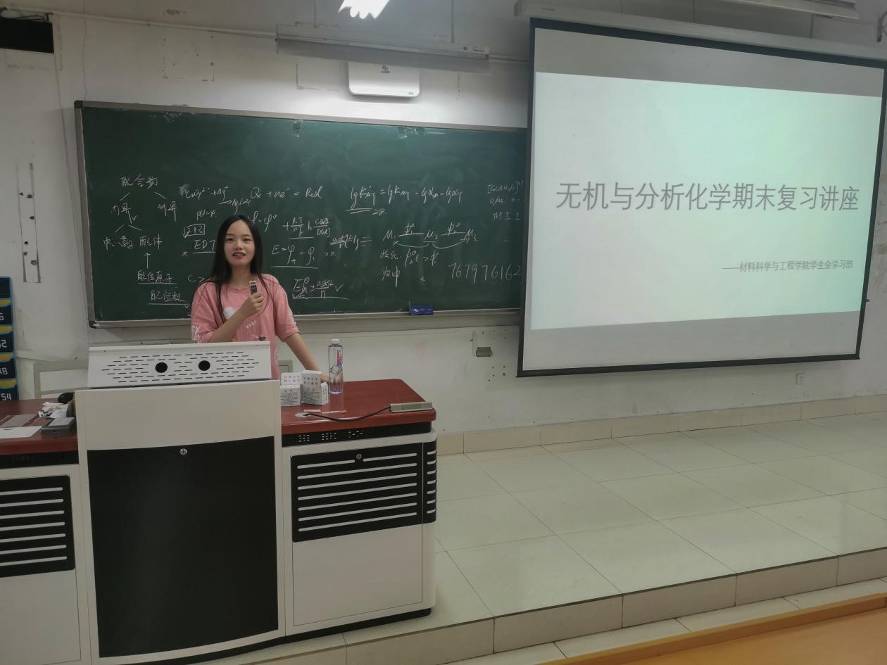 5月7日,材料学院针对大一同学在同和113开展无机与分析化学期末复习经验分享活动。本次学习分享活动属于校学生会主办的“南工大学霸答疑室”系列,由我院复材1904班杨定倩同学作为优秀学生代表进行学习经验分享。